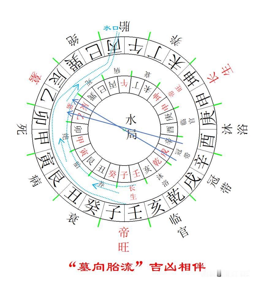 左水倒右,水出丙方一定要慎之又慎!即“墓向胎流”,此格局“情过而亢”、吉凶相伴,所以千万一定要谨慎处理,最好是不用最为稳妥。