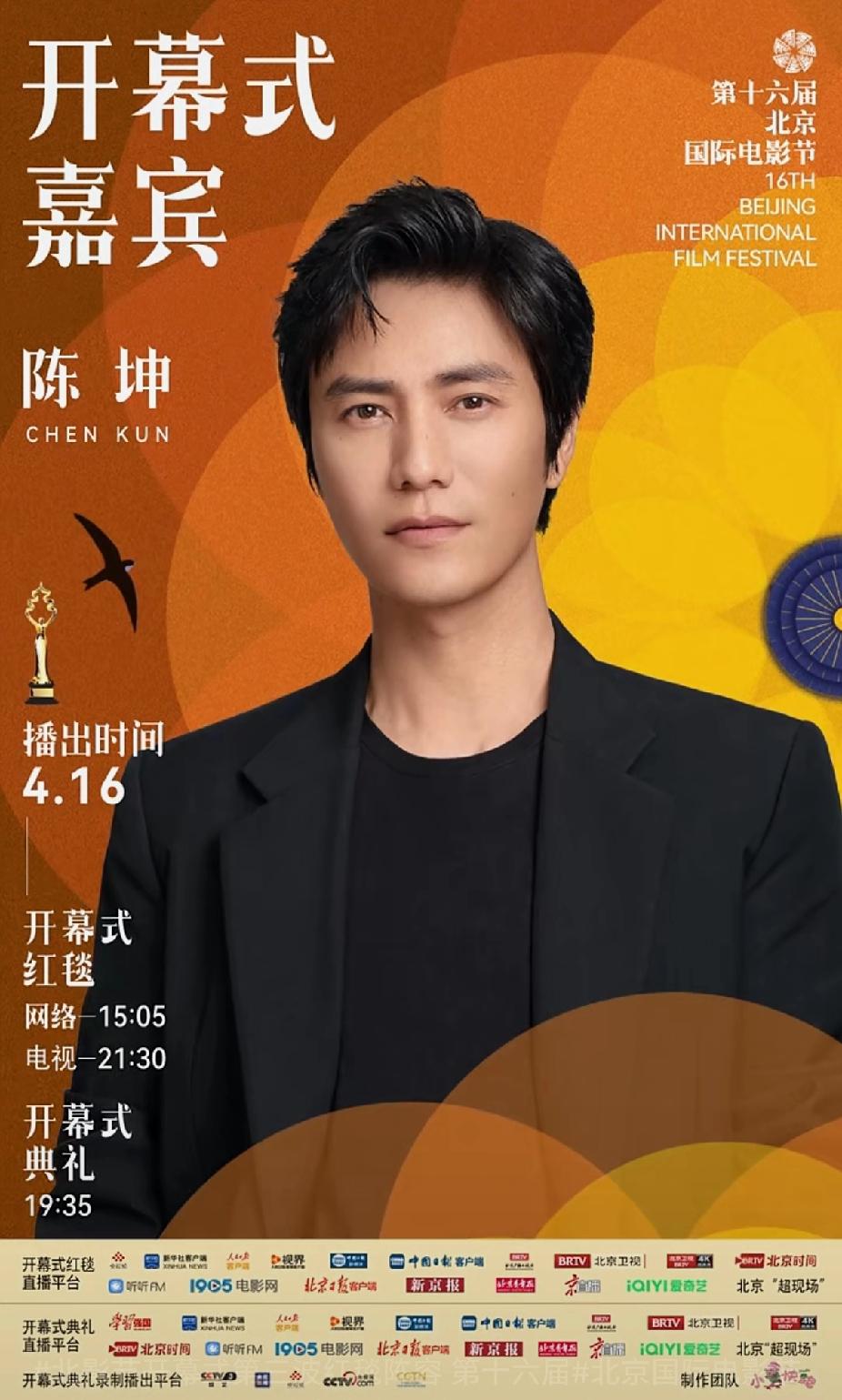 第十六届北京国际电影节 开幕式第三波嘉宾阵容 艾伦、陈昊森、陈坤