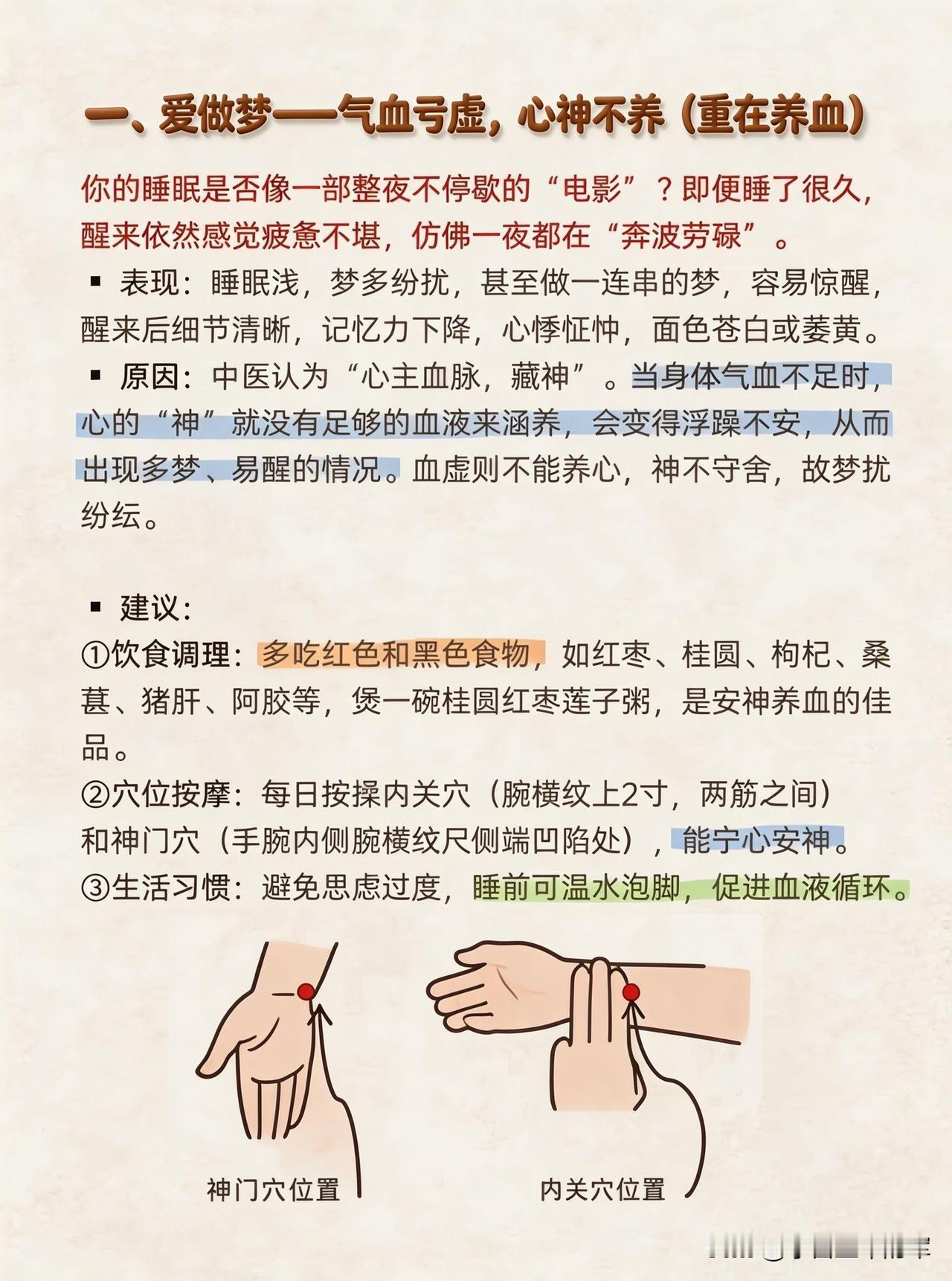 ✅爱做梦→气血亏虚,重在养血