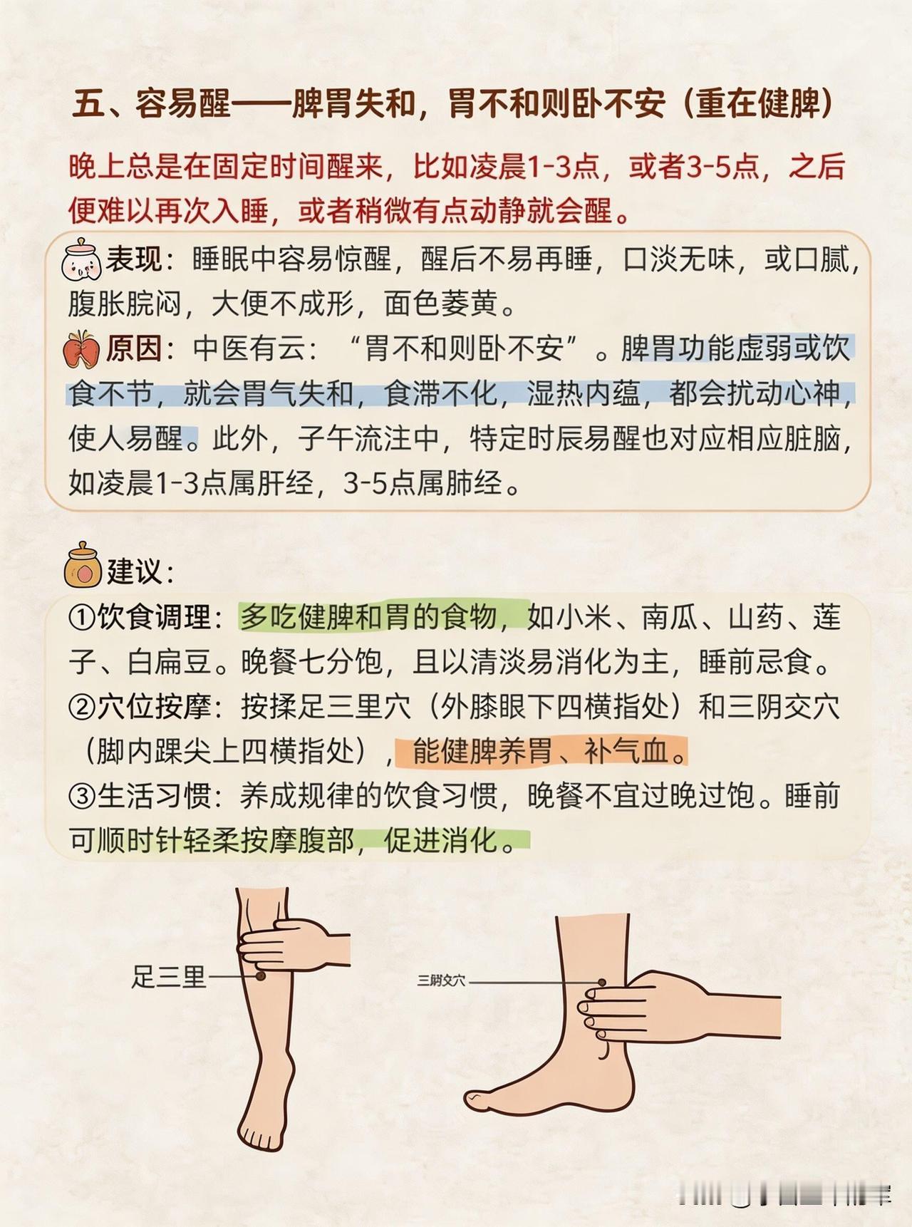 ✅容易醒→脾胃失和,重在健脾