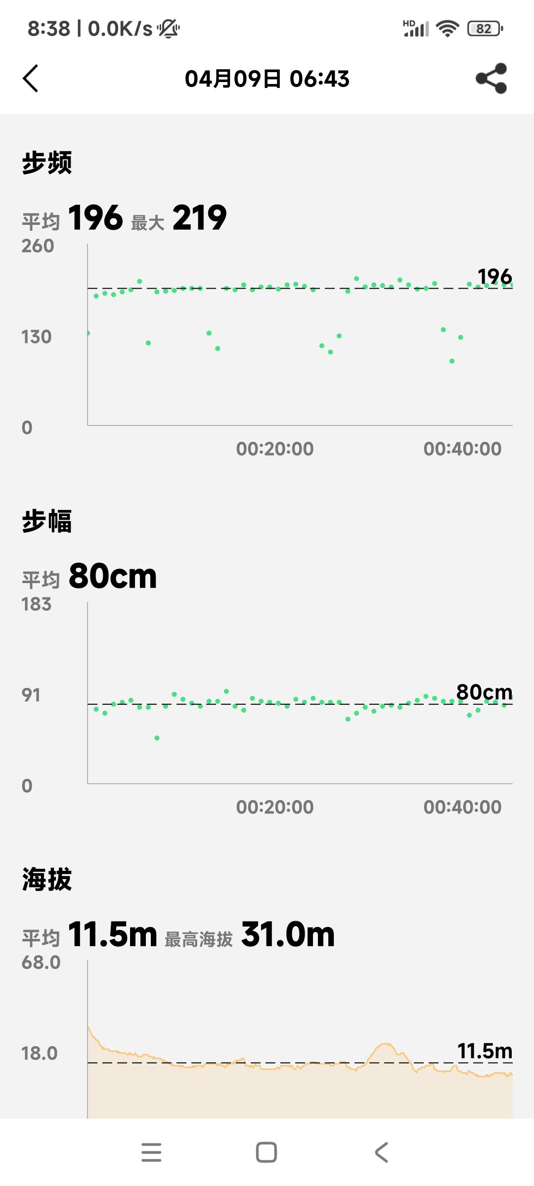 雄安马拉松比赛前,最后一个提速跑,计划七公里、配速630,实际完成7.2公里,配速614。平均心率128。现在开始每次只跑七公里,不能太累否则适得其反。