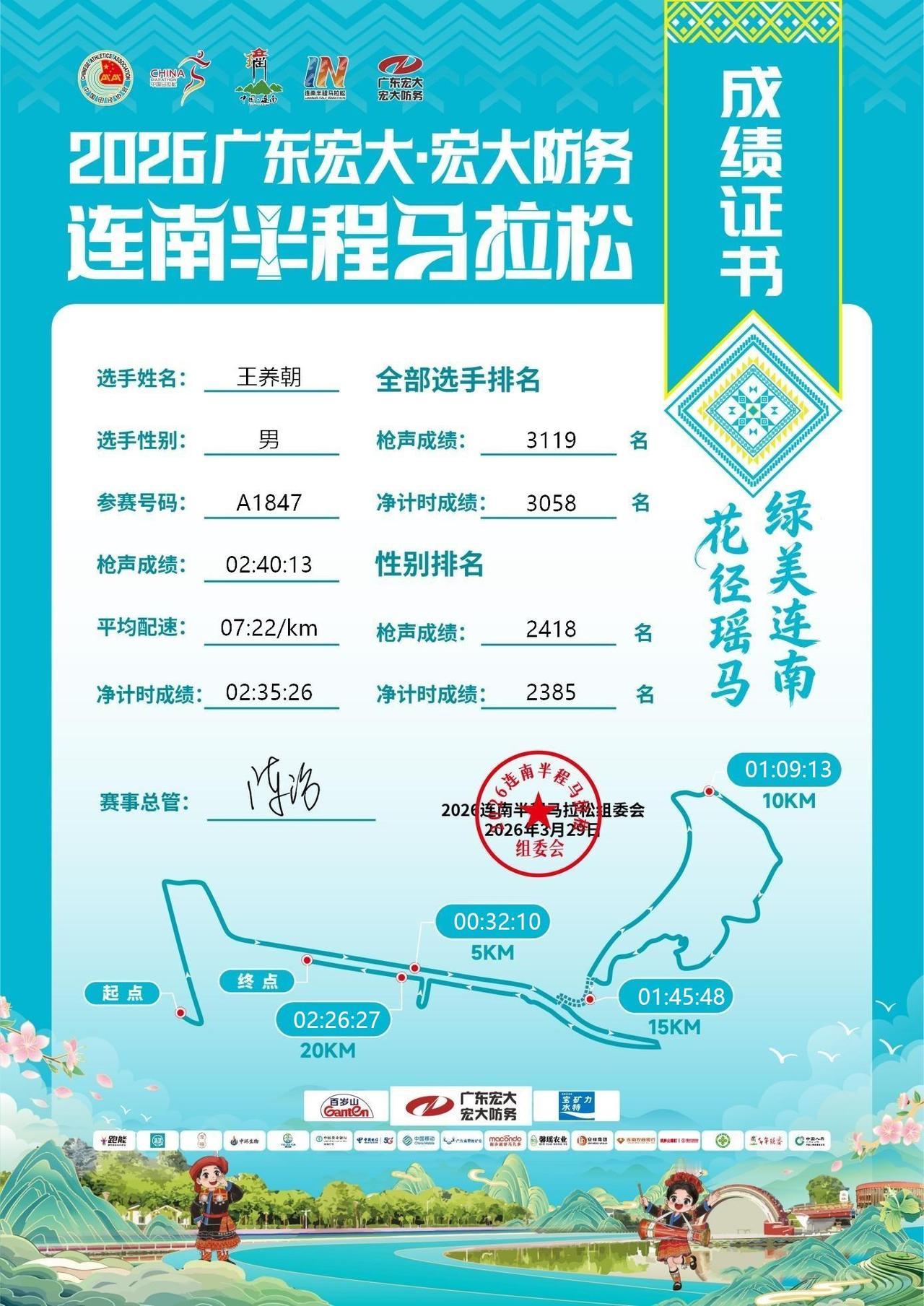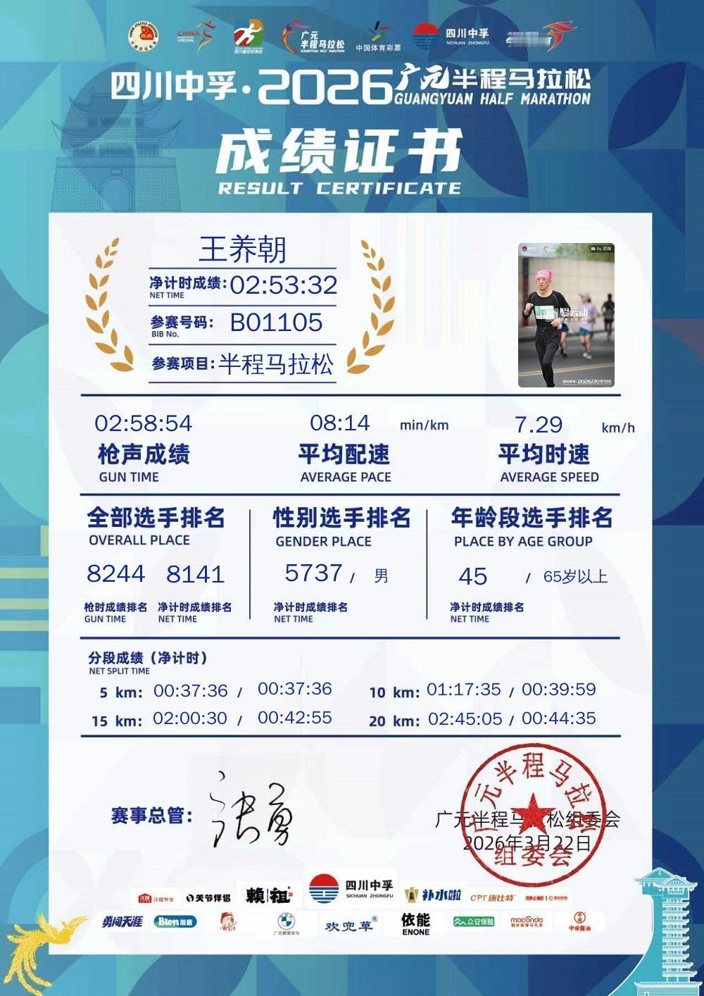 69岁的小老头(57年的鸡),三月份参加了四场半马比赛,分别是湖北孝感、重庆铜梁龙、四川广元和广东连南半马比赛。