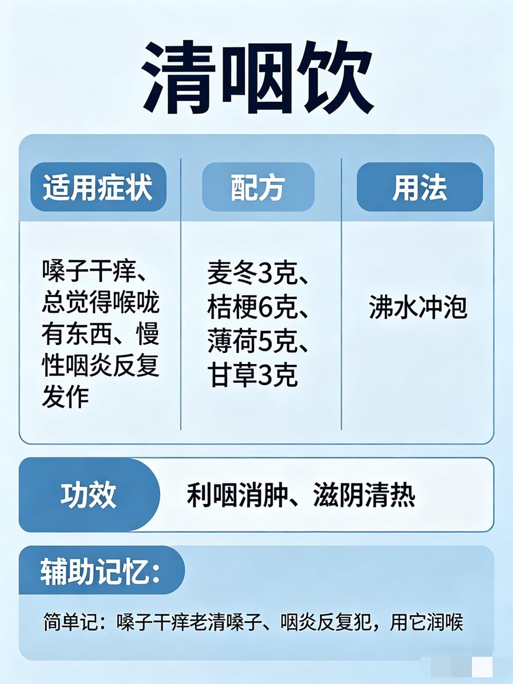 简单记:嗓子干痒老清嗓子、咽炎反复犯,用它润喉。