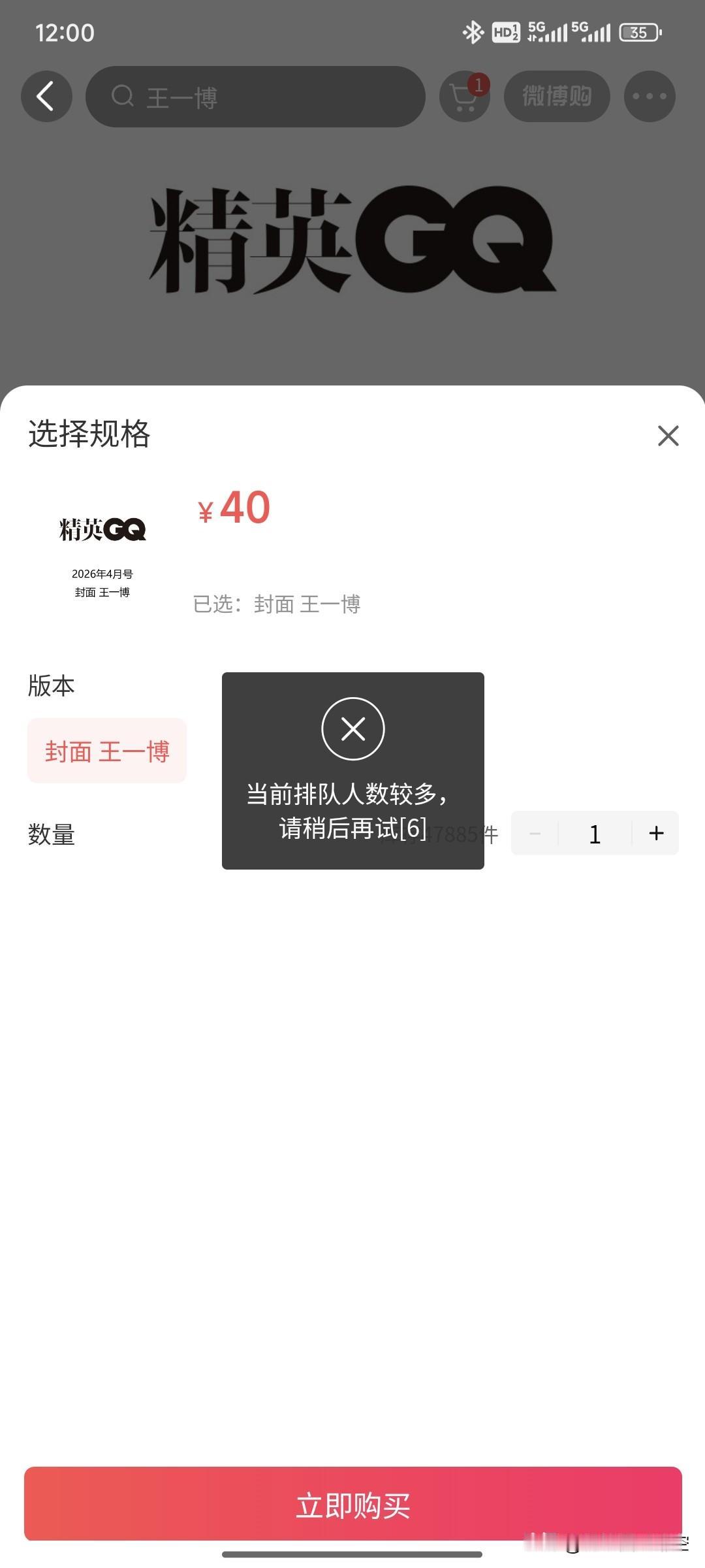 抢个杂志真不容易! 卡点进去提示已下架, 赶紧退出再点,就不断提示“当前排队人数