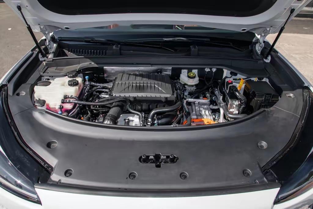 动力用的是鲲鹏混动,市区开平顺省油,日常通勤用电成本很低。满电动力强,超车很轻松,就是亏电后动力会弱一点,发动机噪音也会变大。