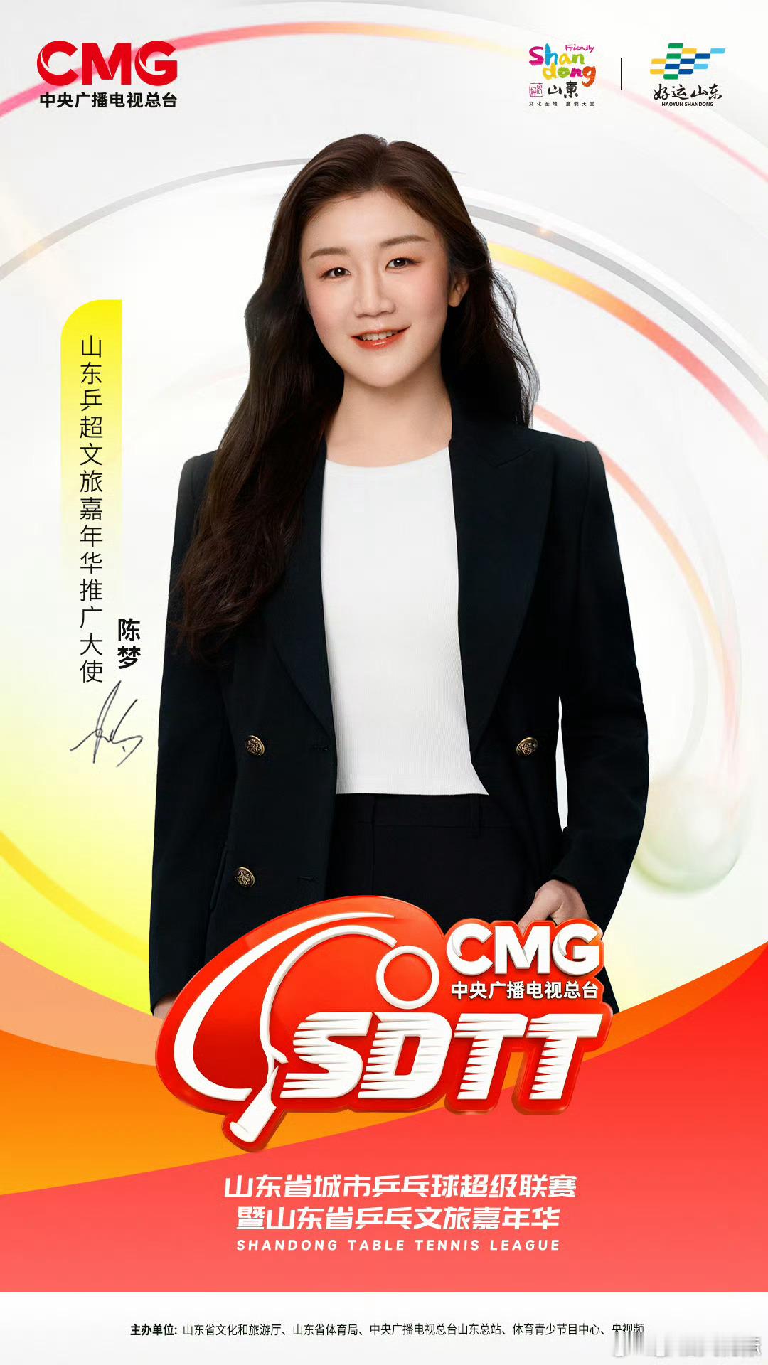 山东乒超推广大使陈梦陈梦山东乒超推广大使从奥运赛场到文旅推广,陈梦的跨界魅力无限!作为山东乒超推广大使,她用实力与亲和力架起桥梁,让乒乓运动更接地气。跟着冠军脚步,探索齐鲁风情,这场嘉年华注定燃爆!