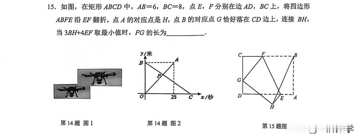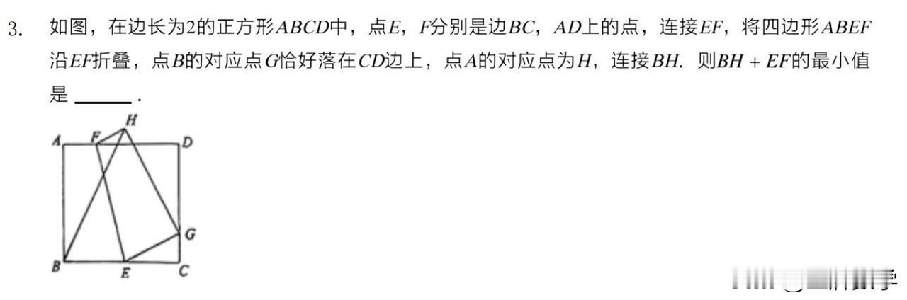 这个第15题,寒假就给同学们讲过,春季提高班当中也讲过,大家可以比较着第3题,都是一个意思,都是十字模型的考察。原题是矩形当中的十字模型,考察相似,我给同学们讲到的是正方形里面的十字模型,考察全等。原题提出一个3来就行了,总体都是线段转换,BG等于BH。然后再将军饮马