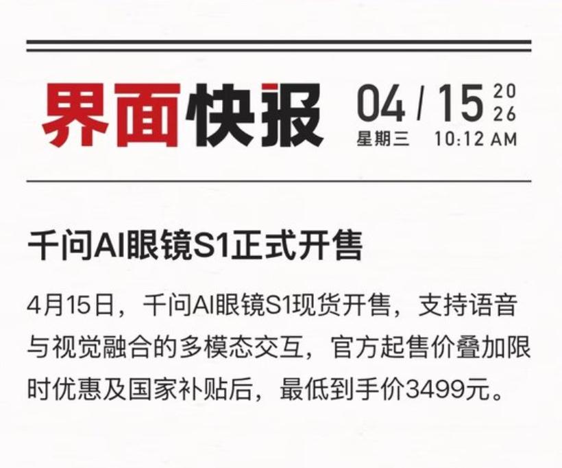 比如这个AI眼镜,现在很火。像苹果、华为、Meta都在做AI眼镜了。而千问AI眼镜则更快,直接在他们之前开始售卖,千问旗舰AI眼镜S1最低到手价3999。