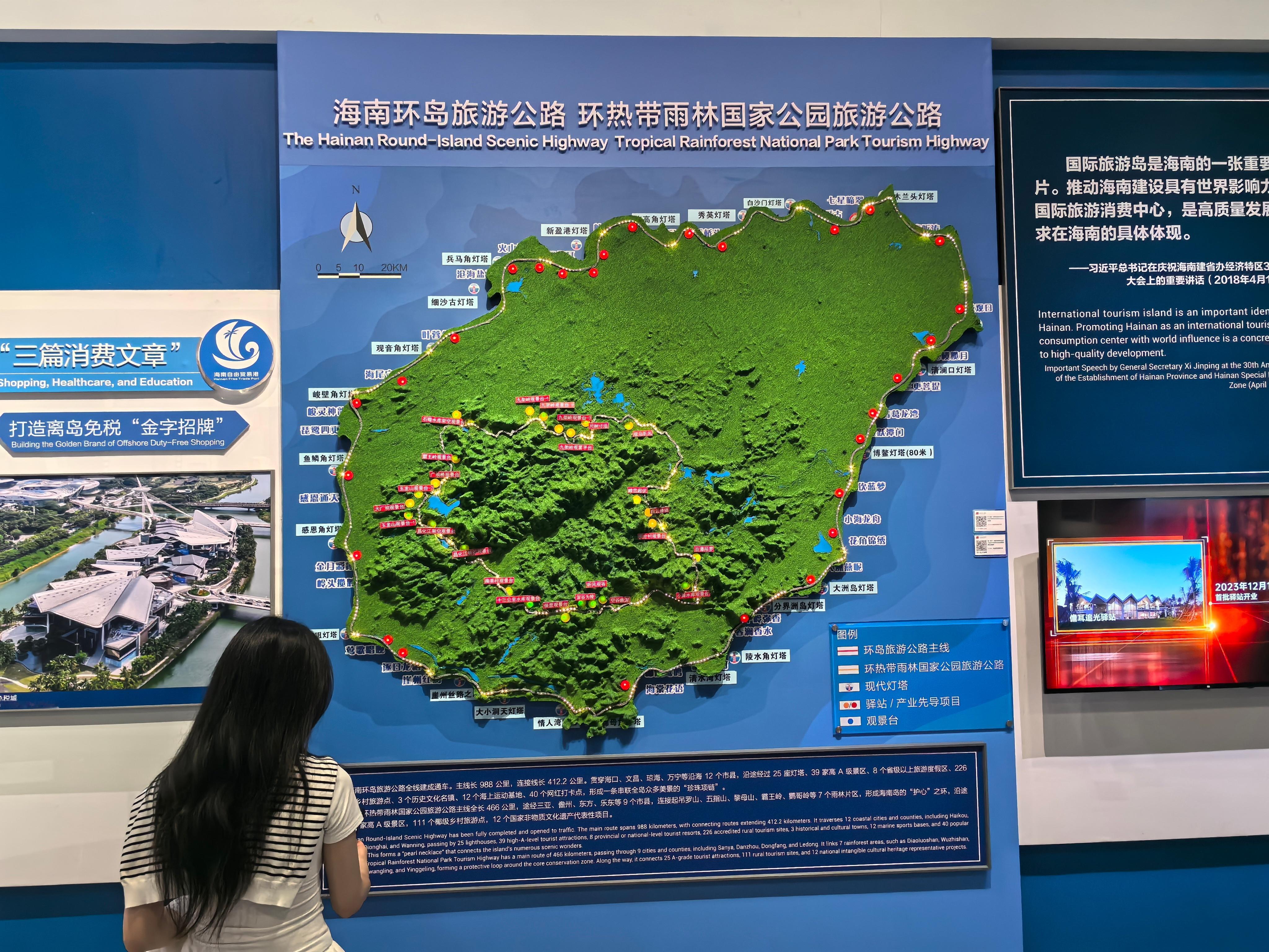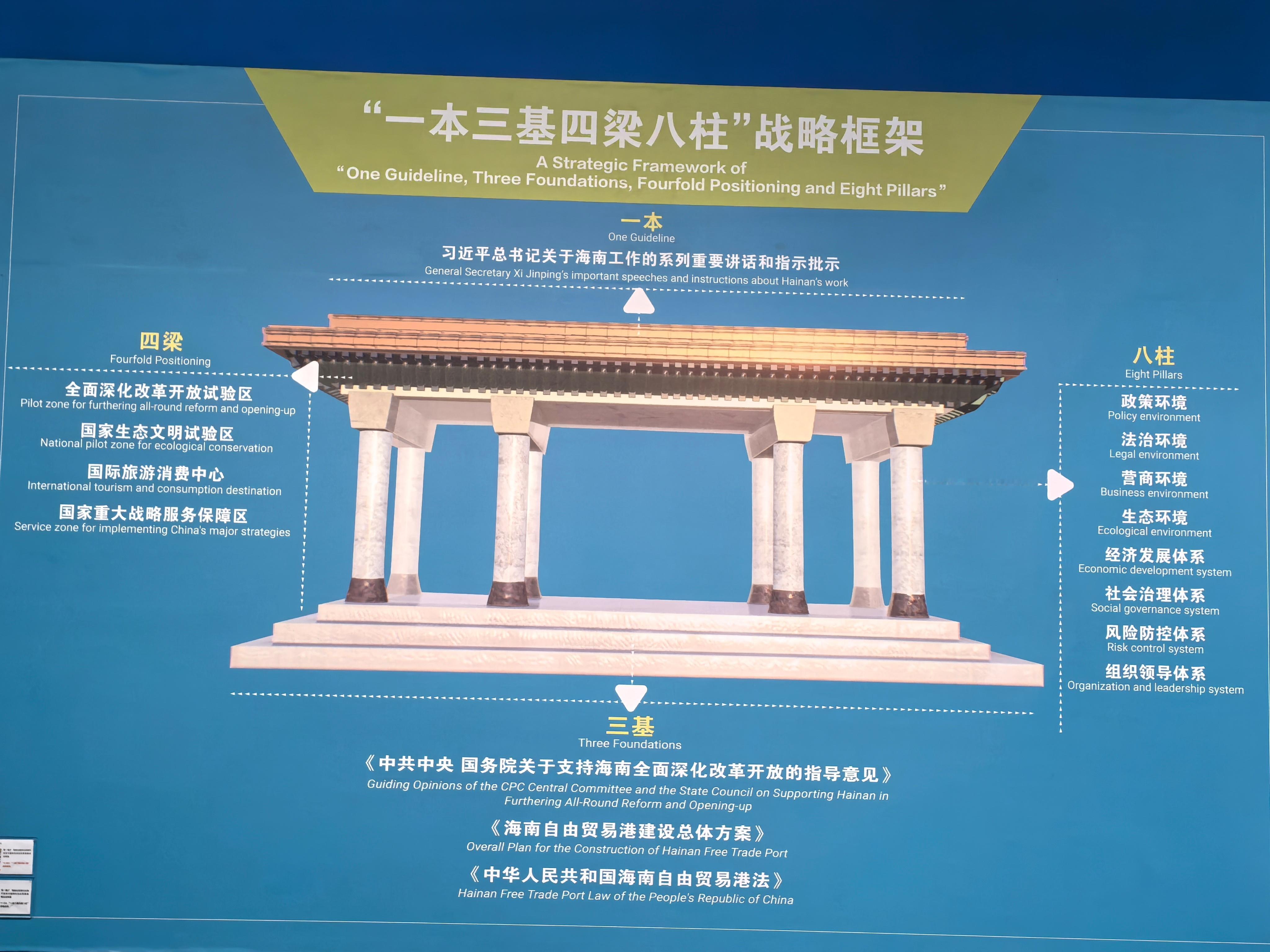 该展览从海南历史沿革、百年奋斗历程和不同发展时期的战略定位切入,深刻揭示了党中央赋予海南全面深化改革开放新使命的重大历史意义,进而围绕海南“三区一中心”战略定位徐徐展开,以一幅幅图片、一张张图表和一段段视频,让参观者对海南自由贸易港建设形成深入系统的了解,为每个人勾画出海南自由贸易港建设的清晰蓝图。