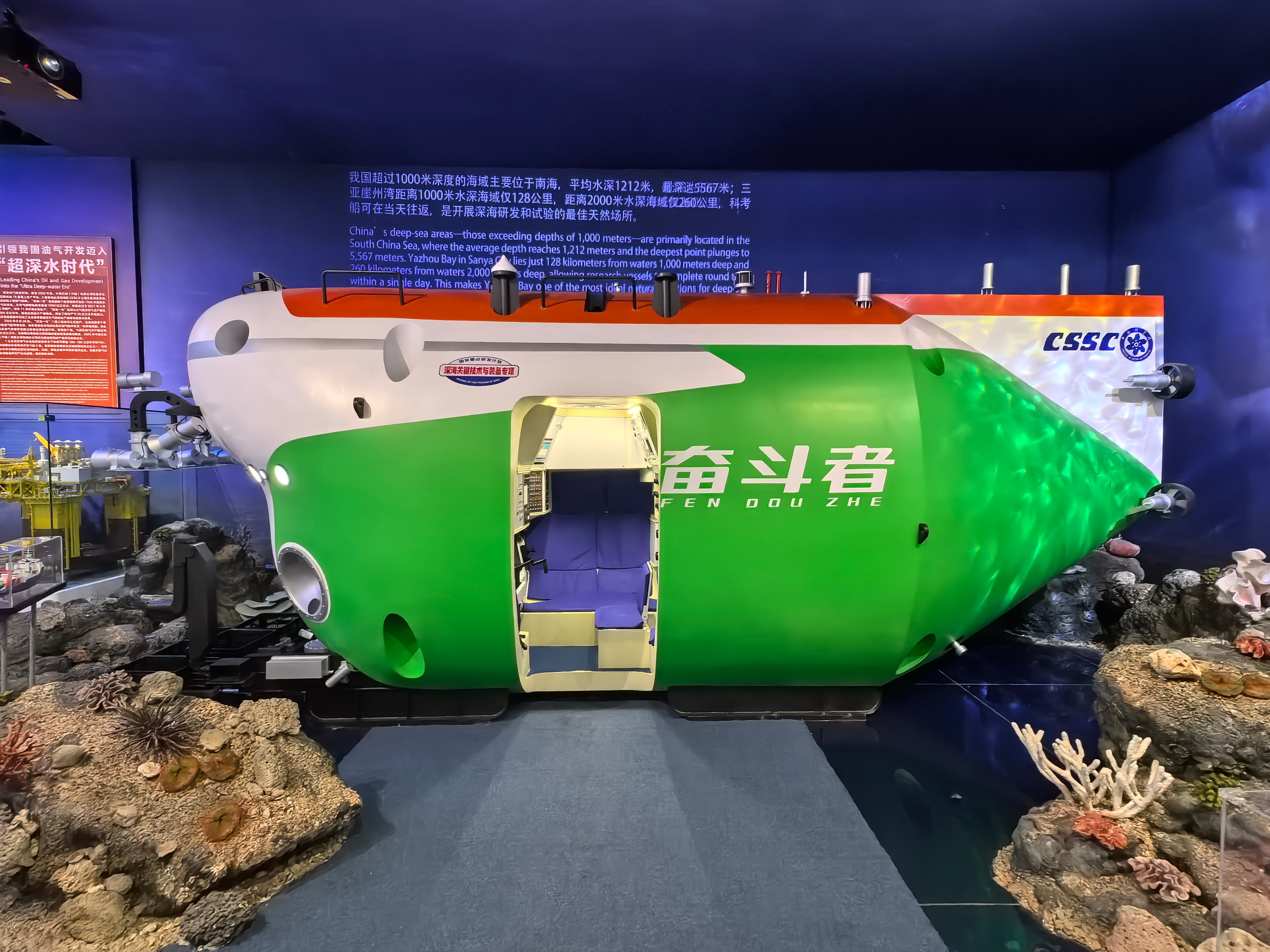 展馆内,超大曲面LED屏播放海南自贸港建设介绍短片,LED屏组成“政策林”滚动展示自贸港政策落地情况,一棵巨大的“产业树”形象展示了海南现代产业体系结构。南繁加代繁育的种子实物,中国自主研发的首个超深水钻井平台“深海一号”模型,“深海勇士”号、“奋斗者”号载人深潜器模型,在海南首发的系列火箭、“嫦娥五号”月球探测器、“天问一号”火星探测器等模型......一件件展品,让正在海南参加“开局之年看中国·开放自贸港”网络主题传播活动的我们倍感震撼!()海南建设自贸港海外华媒解锁Hainan Travel开放海南自贸港