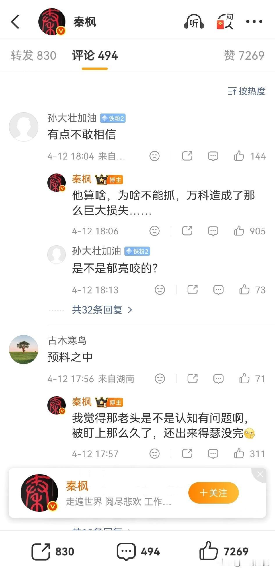 信息来源超千万粉丝大V爆料,引发众人议论纷纷,紧连着王石妻子微博发文,“这是法治社会,造谣是不需要付出代价的吗”?并没有点名秦枫并艾特他, 但是看得出来,算是隔空回应。