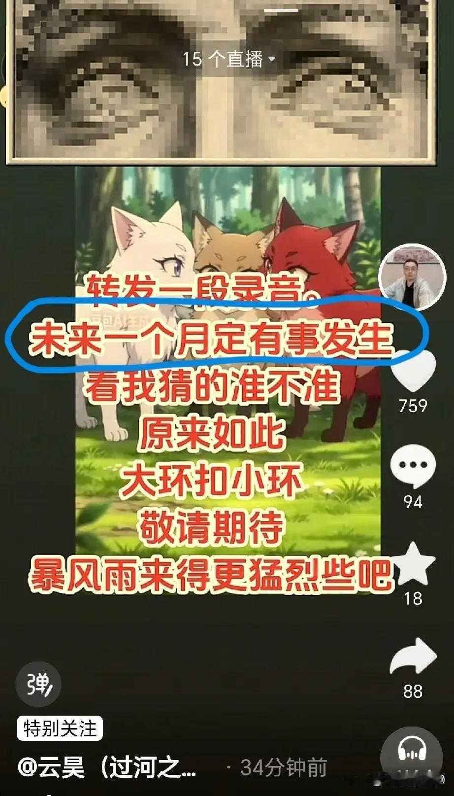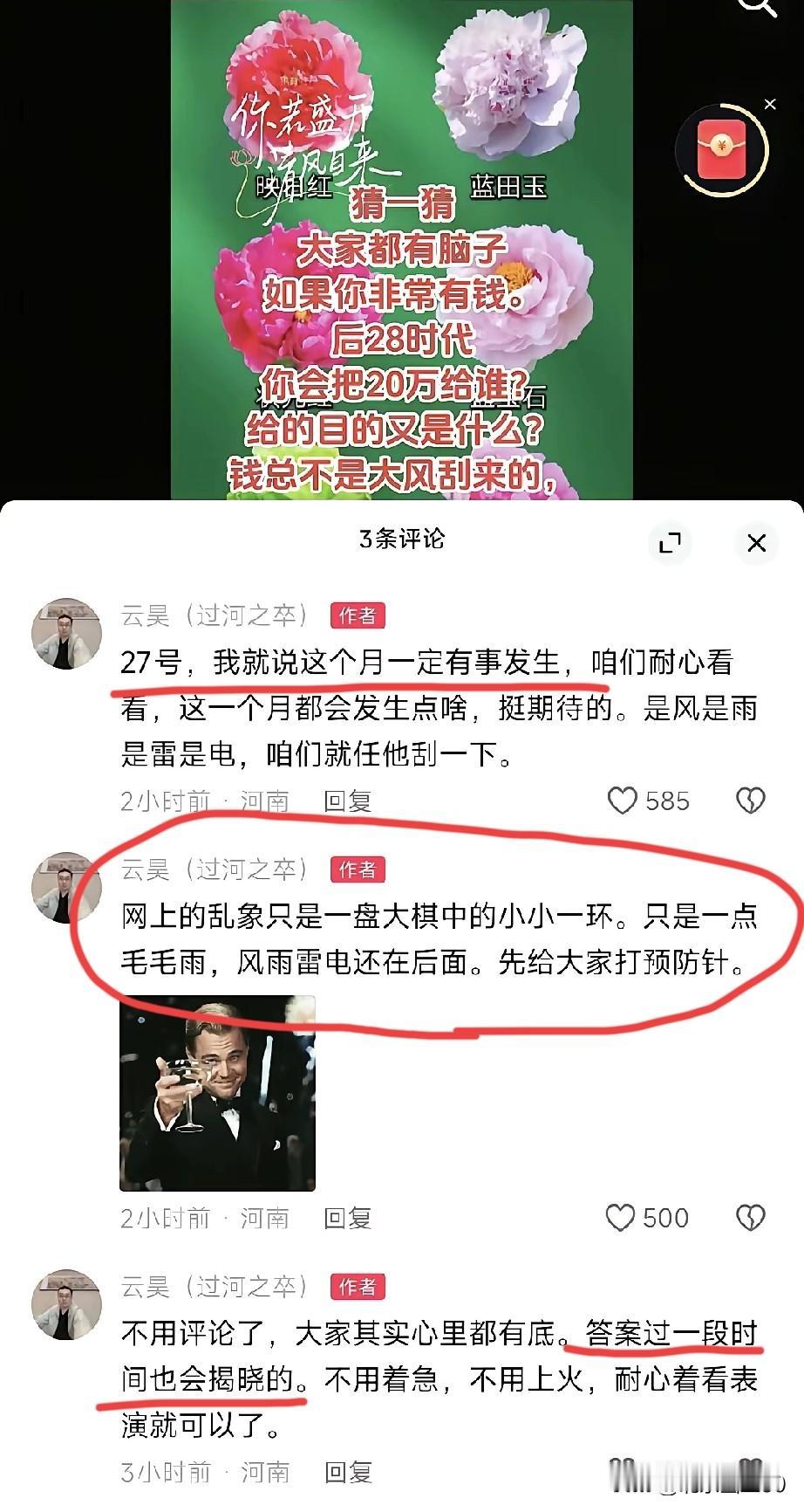3月末,云昊发作品:未来一个月定有事发生,大环扣小环,敬请期待!今天云昊再发作品:27号,这个月一定有事发生!让子弹再飞半个月吧!