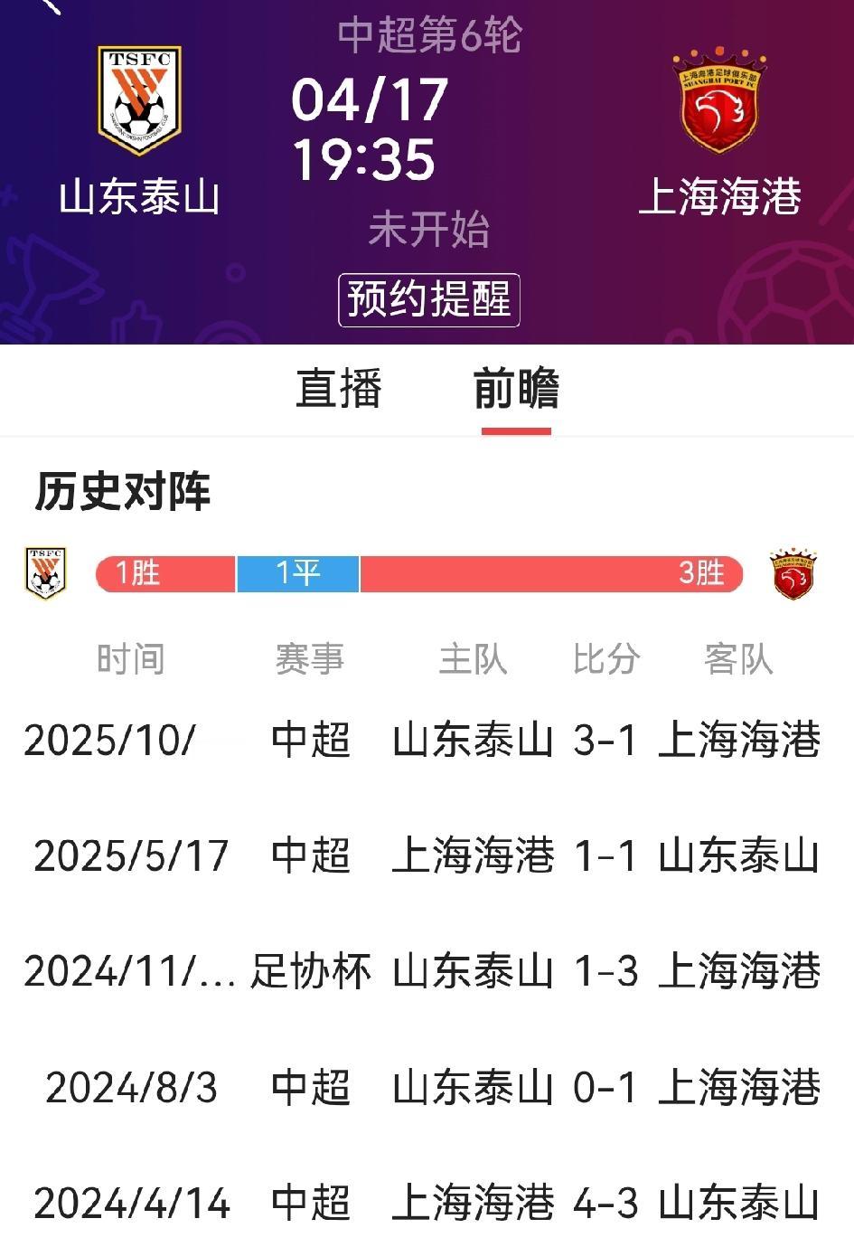 的确,中超第六轮率先开赛的这场焦点大战,主队泰山客队海港都是豪门,每次交手都是绝对的硬碰硬。但本赛季两队都不走运,战绩惊人:泰山是5战两败,海港仅5战两胜,还平添了诸多伤兵。