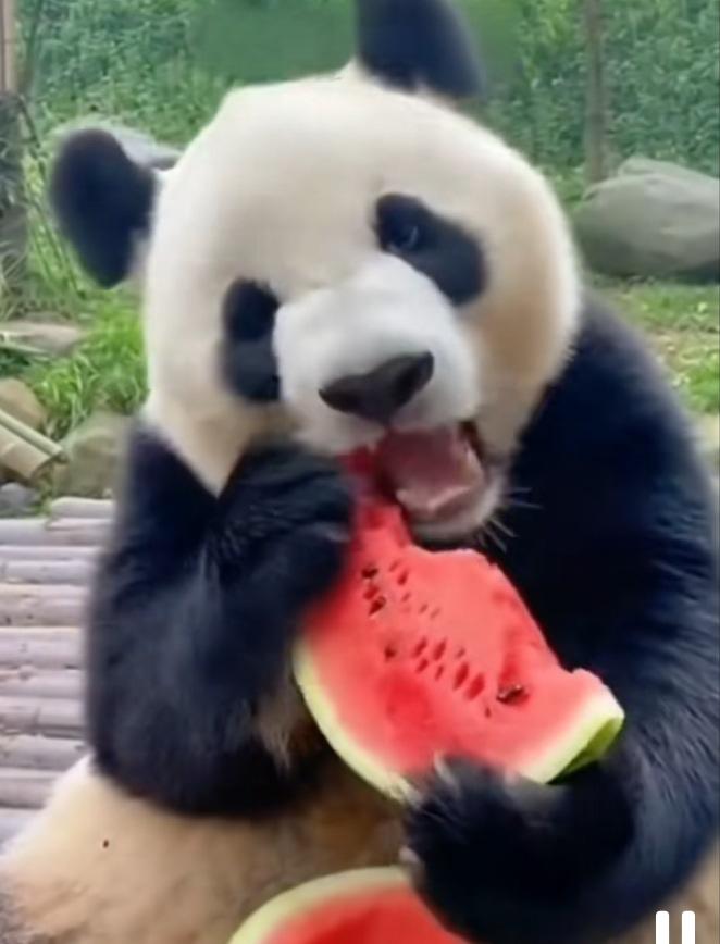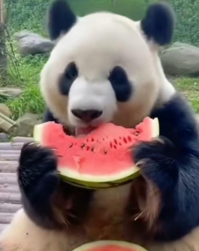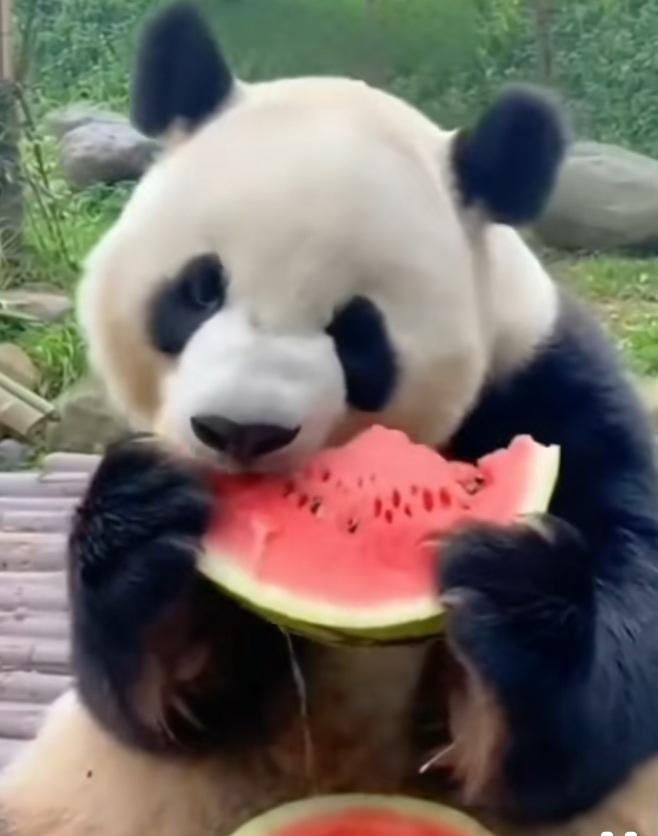 国宝还挺会吃西瓜呢,用一双手捧着西瓜块吃得很带劲,吃得嘴角流汁,关键是它还知道只吃又红又甜又可口的西瓜瓤,不知道会不会吐西瓜籽!它吃西瓜的动作像极了人类,太人里人气了,这西瓜看起来又美味又新鲜,好吃极了!国宝好聪明啊,吃西瓜一脸满足幸福的样子,太可爱太萌了![比心][赞]国宝 熊猫 大熊猫 熊猫到底多可爱 熊猫有多可爱? 今天看熊猫了吗 (cr:@滚滚熊猫乐园)