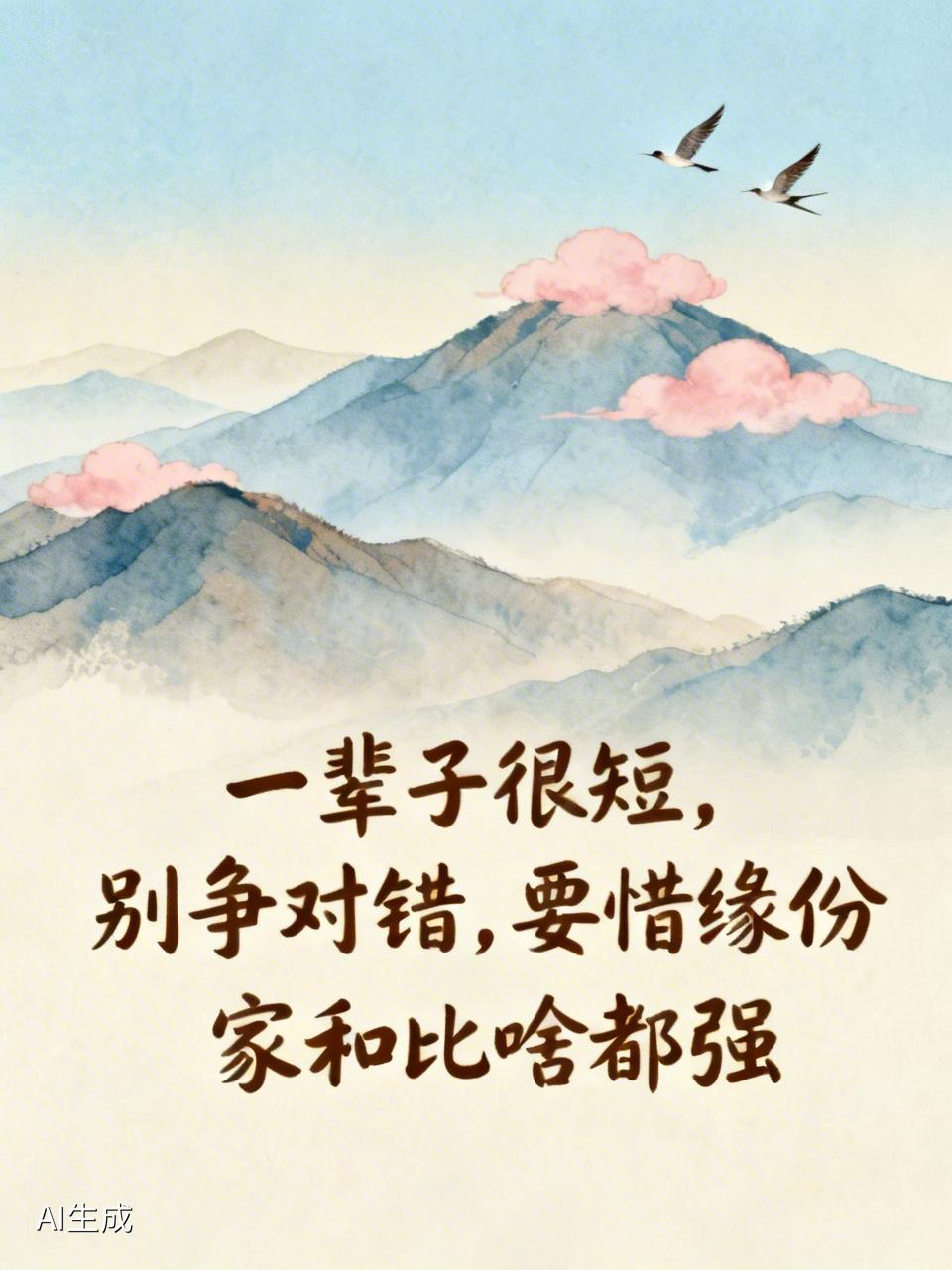 一辈子很短,别争对错,要惜缘份 一辈子很短,转眼就老了。 年轻时总想着争