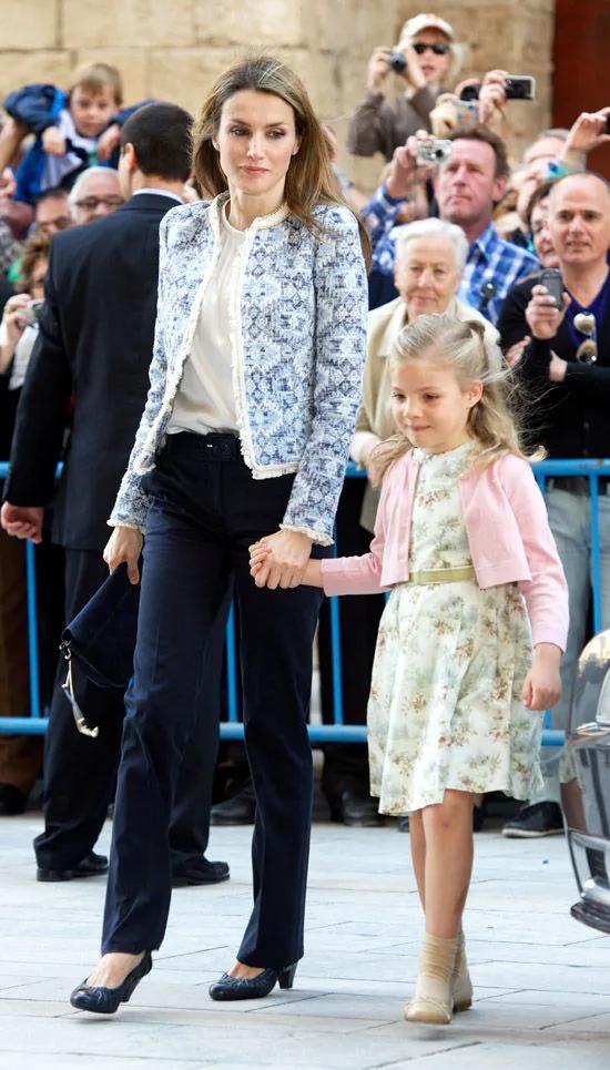 据外网时尚网站整理,莱蒂齐亚第一次穿这件民族风外套要追溯到2013年的复活节弥撒,那会牵着的小女儿索菲亚还是个小朋友,现在早已长成一米八的大高个了