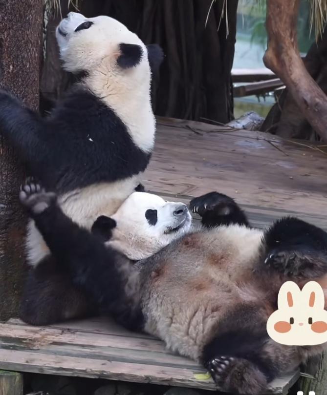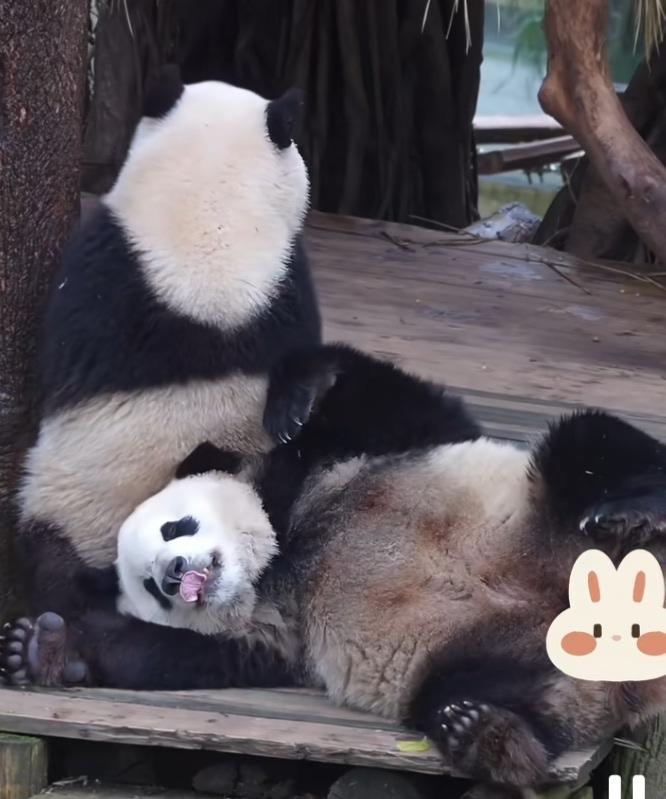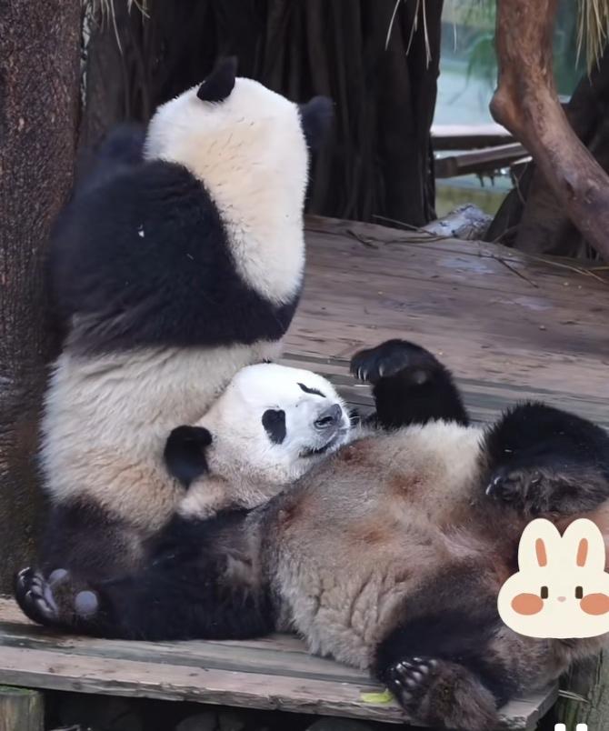 好奇很可爱,有时候童心未泯的它很喜欢跟女儿三妹撒撒娇,看,它四仰八叉挨着三妹躺在木架上,表情动作好可爱呀,一脸幸福的样子,像个小小孩似的,三妹都觉得不可思议,妈妈怎么了?它还伸手想要挠一挠三妹,真是个调皮可爱的妈妈!好奇好幸福呀,一晃的,三妹就长这么大了,长得又漂亮又可爱又聪明,孩子长大了,自己也好轻松,日子过得悠闲自在又幸福,实在是太安逸了!好奇 熊猫好奇 熊猫 大熊猫 国宝 守护国宝大熊猫 熊猫到底多可爱 熊猫有多可爱? 重庆动物园 (cr:@🌈小幸运🌈)