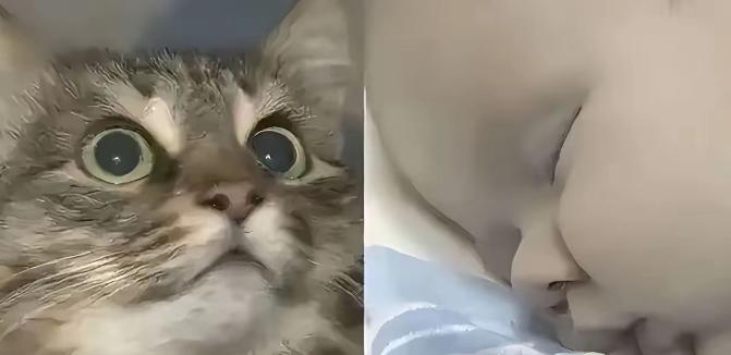 纸箱里,一只猫正紧紧贴着一个婴儿,孩子被护在身体中间,猫还在不停舔孩子的手,动作很轻,像是在确认他还活着。