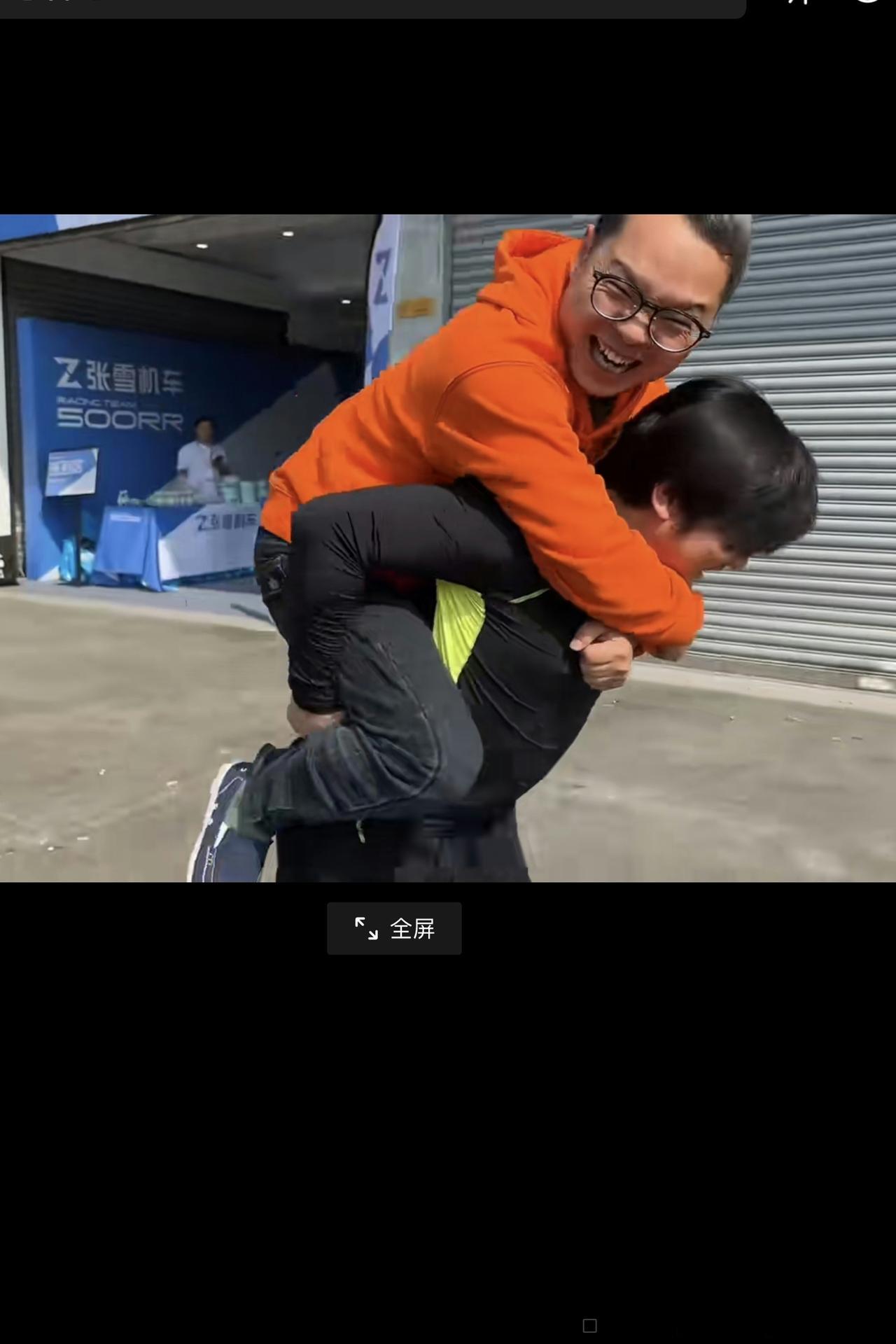 请大家瞧一瞧:员工把张雪当作“张雪机车”,让张雪背着自己快速的跑动,被背的人在享乐,张雪当“机车”,张雪跑的越快,被背的人越开心,即使张雪倒地了,张雪也心甘情愿、乐此不疲!