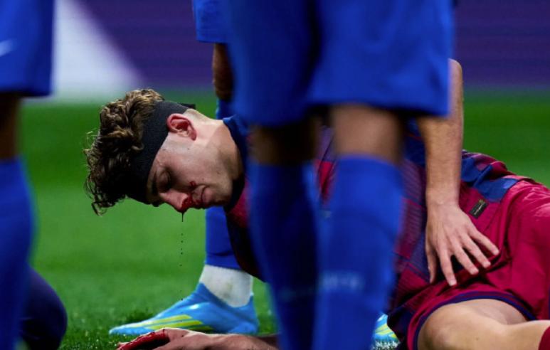 马竞1:2巴萨的比赛太多争议,而费尔明被马竞门将踹的鲜血直流的场面让人不敢直视,
