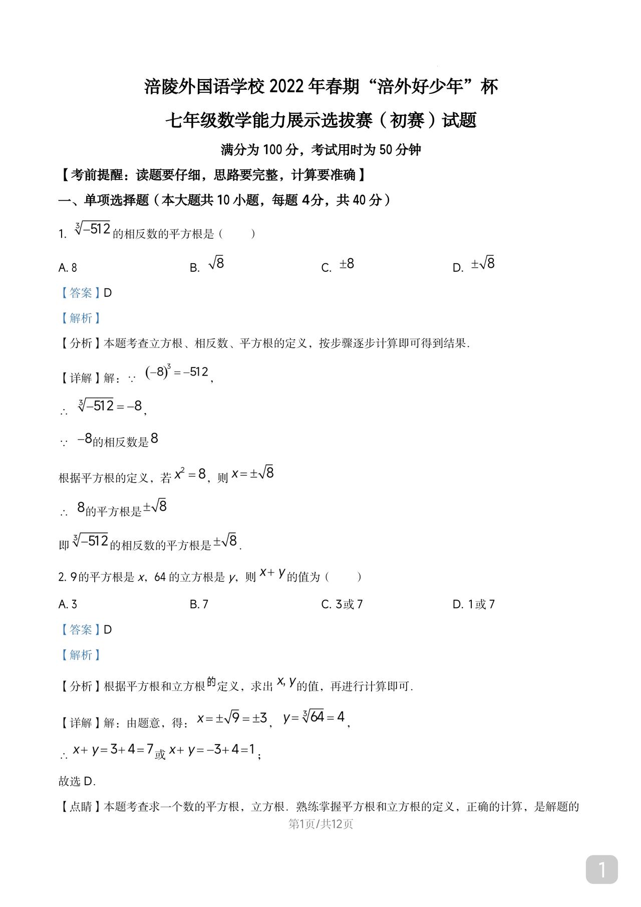 初一数学竞赛题 试题要么不发 发就要带上答案 这样才有利于粉丝学习 有利于社会进