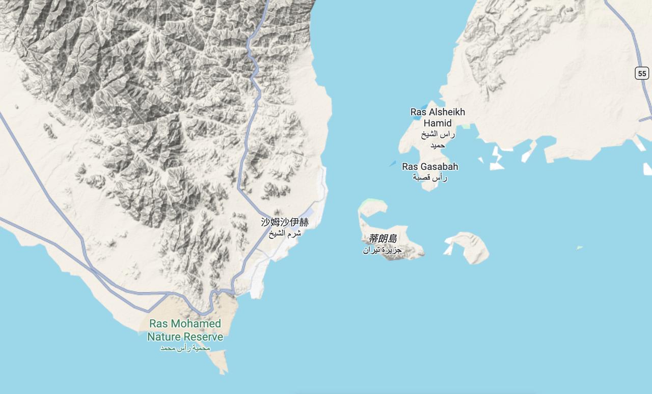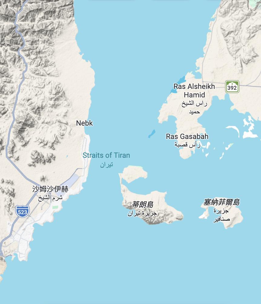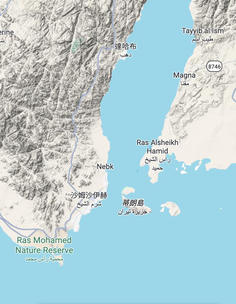 蒂朗海峡: 它是位于埃及与沙特阿拉伯之间的海峡; 它地处亚喀巴湾南部与红海北端交