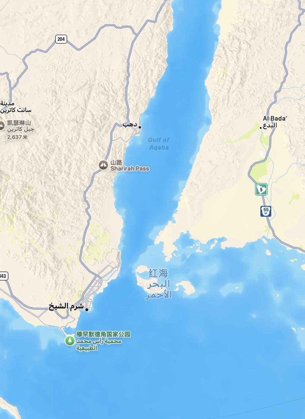 它地处亚喀巴湾南部与红海北端交界处;