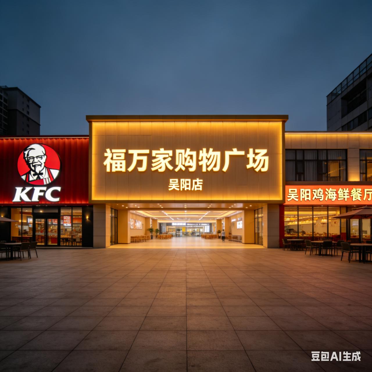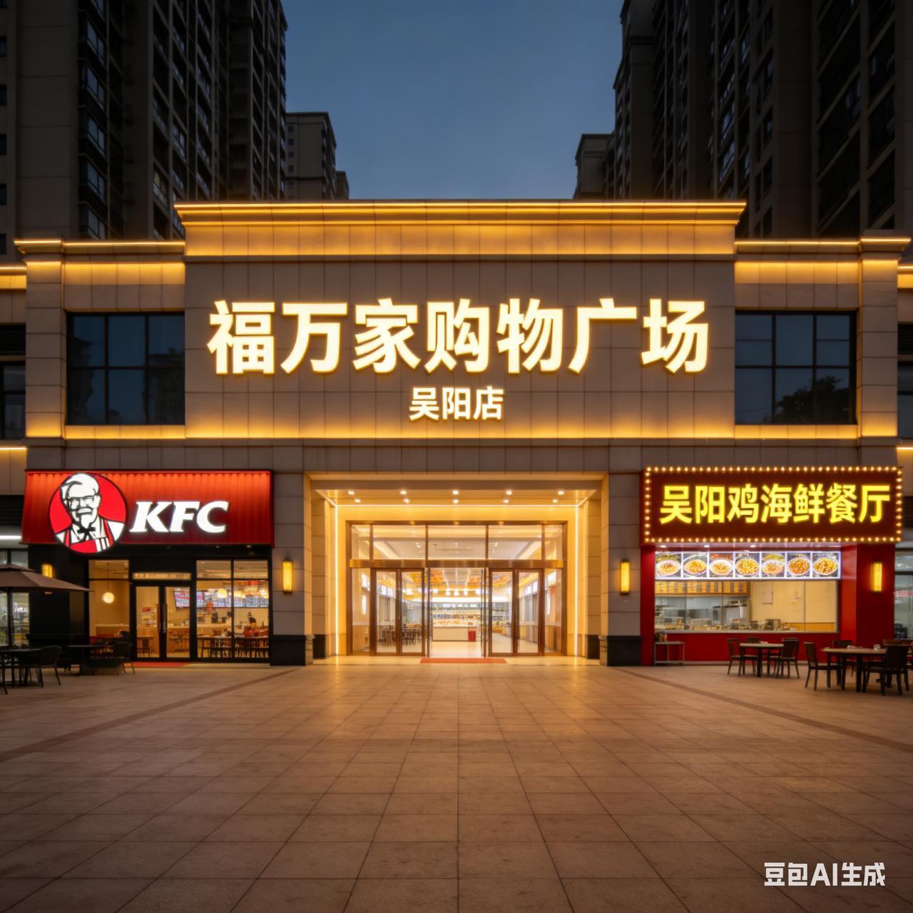 吴阳镇一街,福万家购物广场,肯德基,吴阳鸡海鲜餐厅