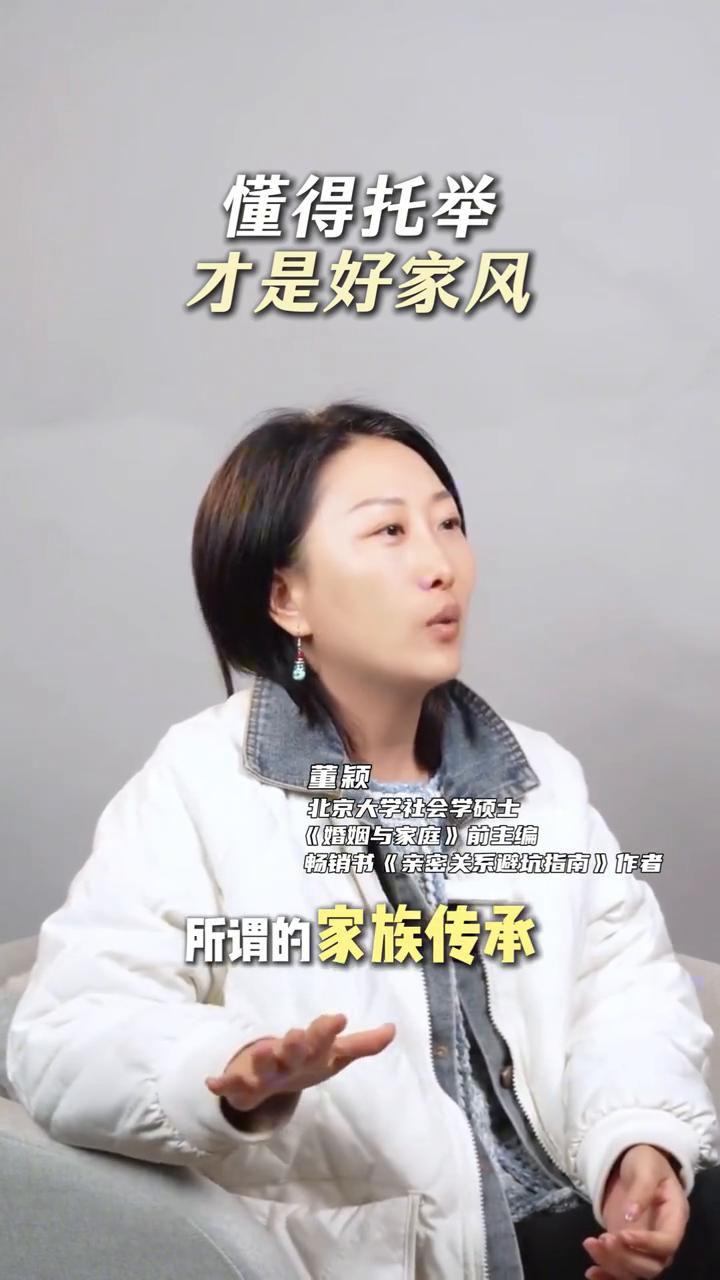 懂得托举才是好家风。 董颖,北京大学社会学硕士,《婚姻与家庭》前主编,畅销书《亲