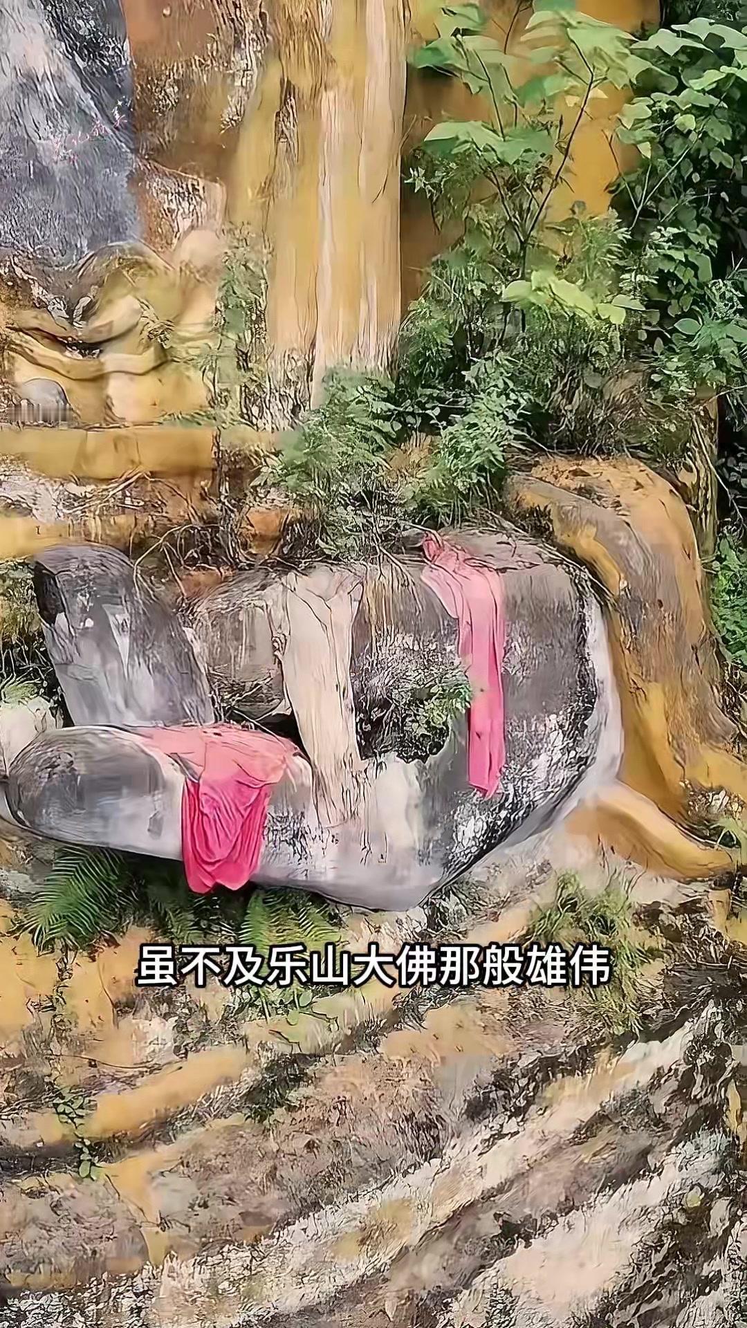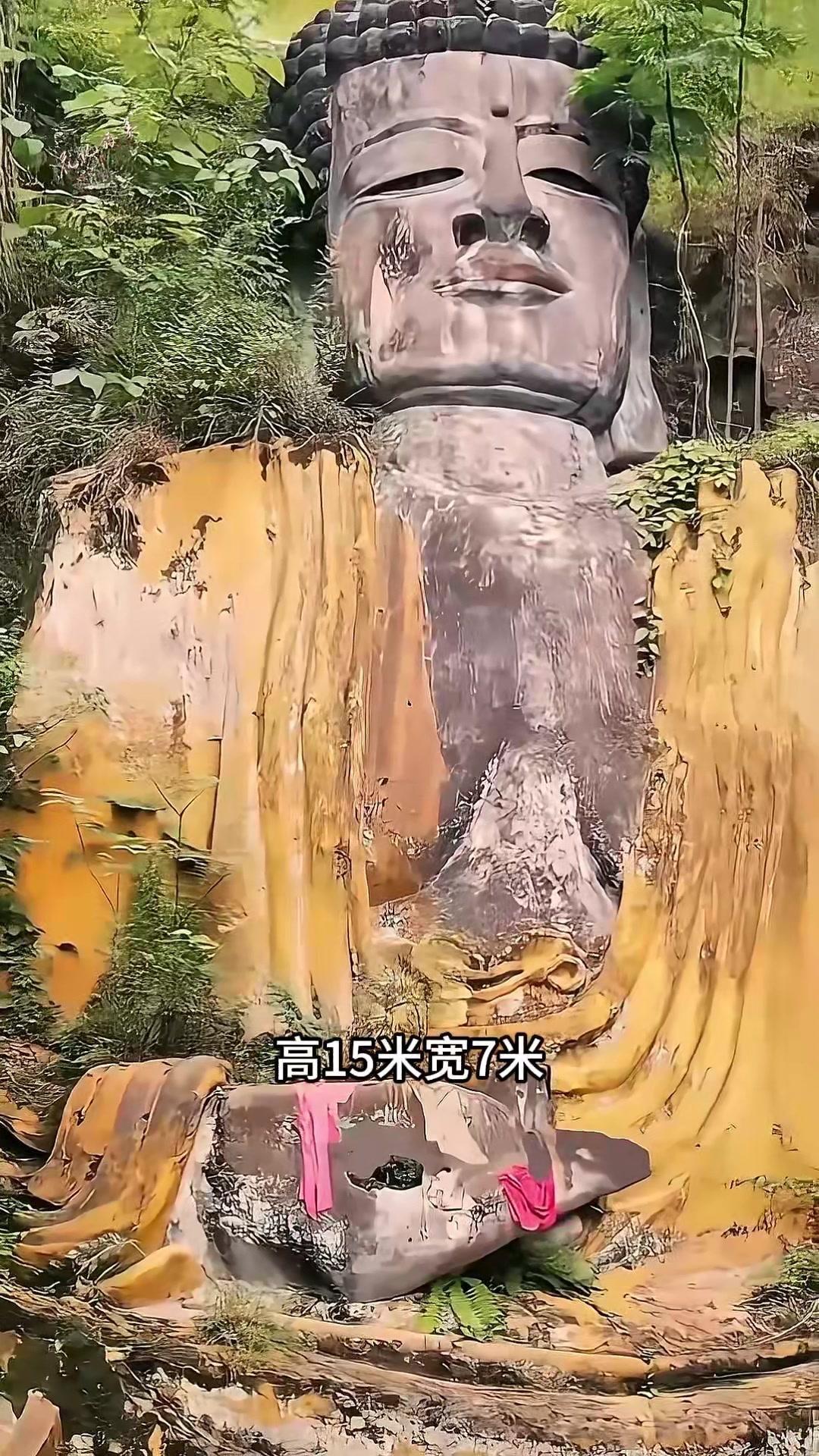 高15米宽7米,依山而建,虽没有乐山大佛雄伟,却也足够震撼。岁月在他身上留下痕迹,那份无人问津的孤寂,让人忍不住发问:是谁将他安置于此,又为何让他如此孤独?实在太可怜了。
