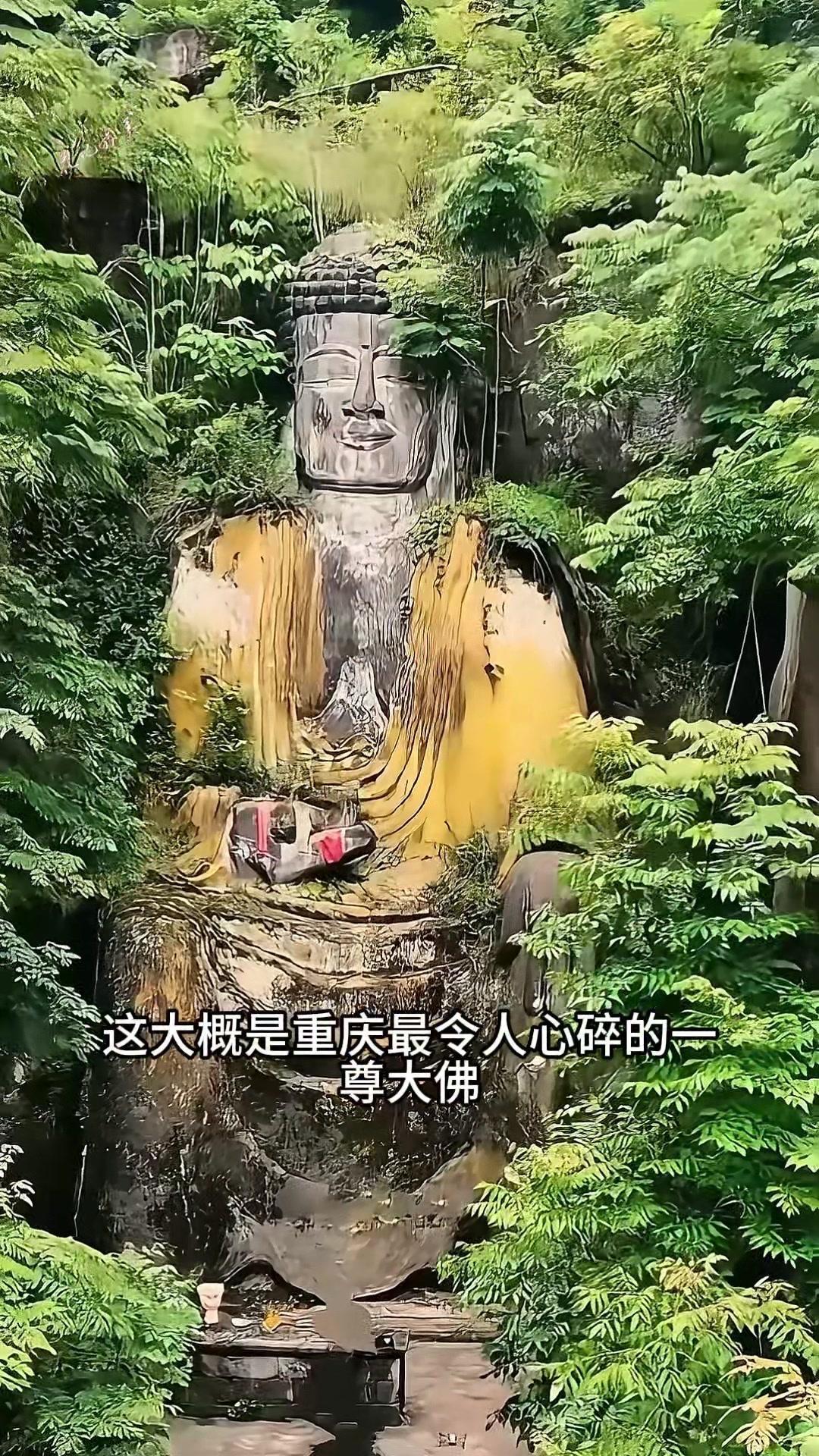 这大概是重庆最令人心碎的一尊大佛。本该享受众人香火供奉,如今却孤独静卧荒草间,佛