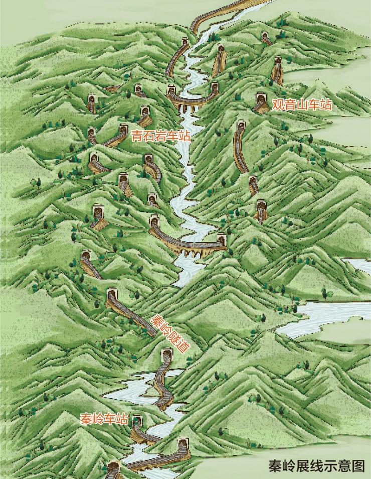 陕西交通寻览之“秦岭火车站”。宝(鸡)成(都)铁路作为中国第一条穿越秦岭山脉的干线,在秦岭南坡陕西省凤县黄牛铺镇东河桥村,设立了唯一以“秦岭”命名的火车站。宝成铁路从宝鸡市区跨过渭河后,往南进入秦岭山脉,沿清姜河,过大散关,便开始通过盘旋状翻越秦岭(俗称‘展线’),经观音山、青石崖车站,最后下坡到达秦岭车站。由于列车行驶展线需加挂火车头补充牵引,秦岭站就此承担了摘挂作业功能,运行宝成铁路的客货列车均会在这里停靠(目前客运仅一对慢车或定期临客停靠)。2022年秦岭站对周边环境做了打造,增添铁路文化元素,使交通窗口具备游览性质。