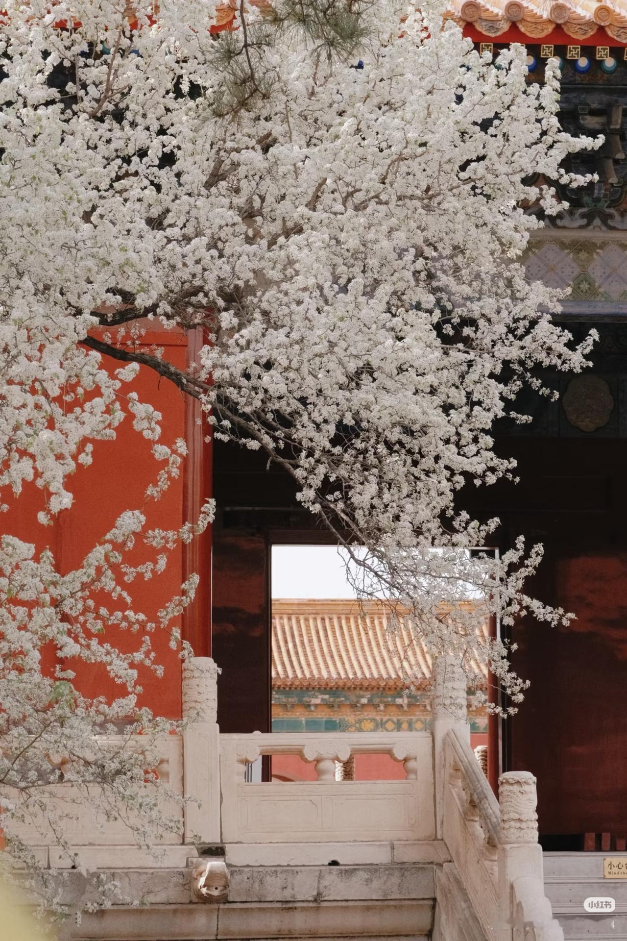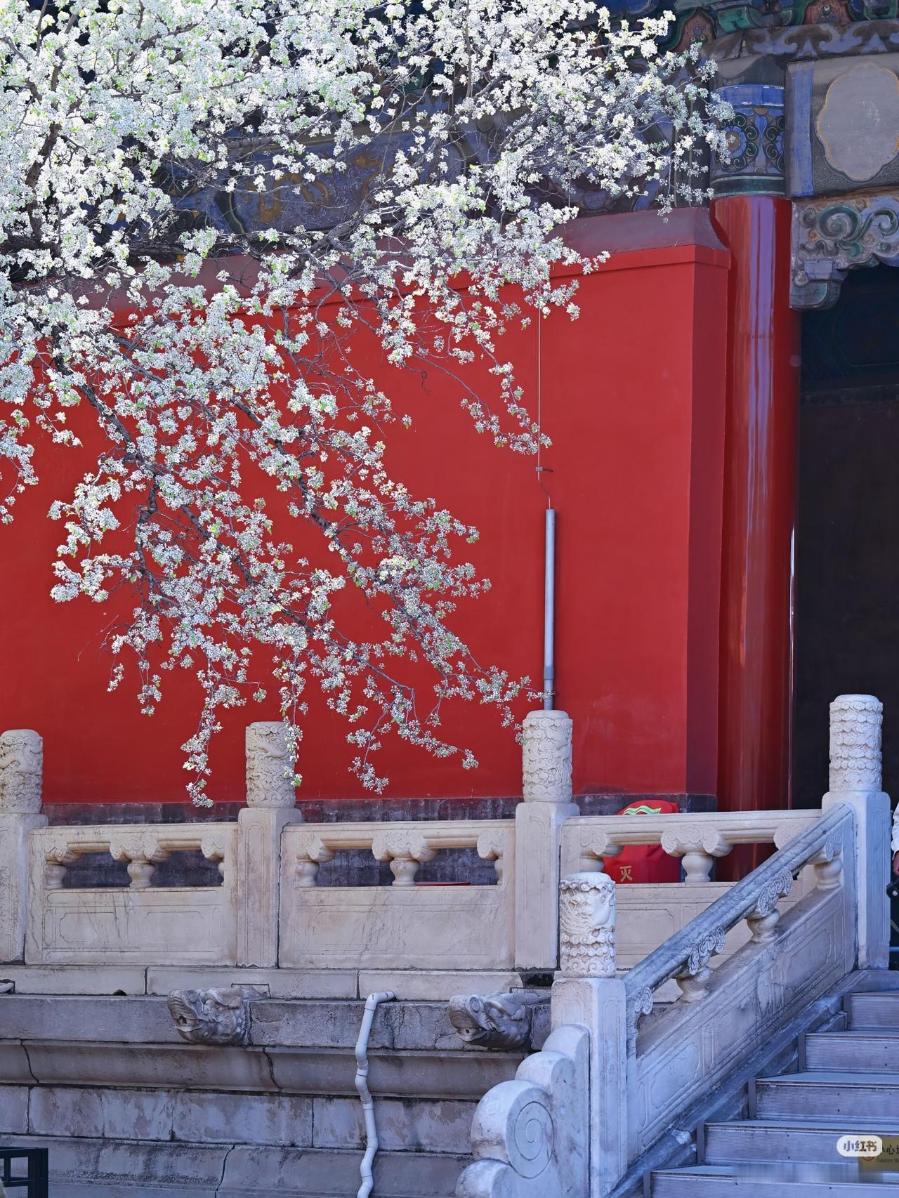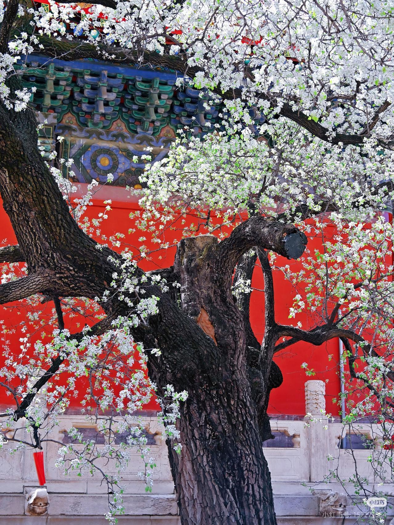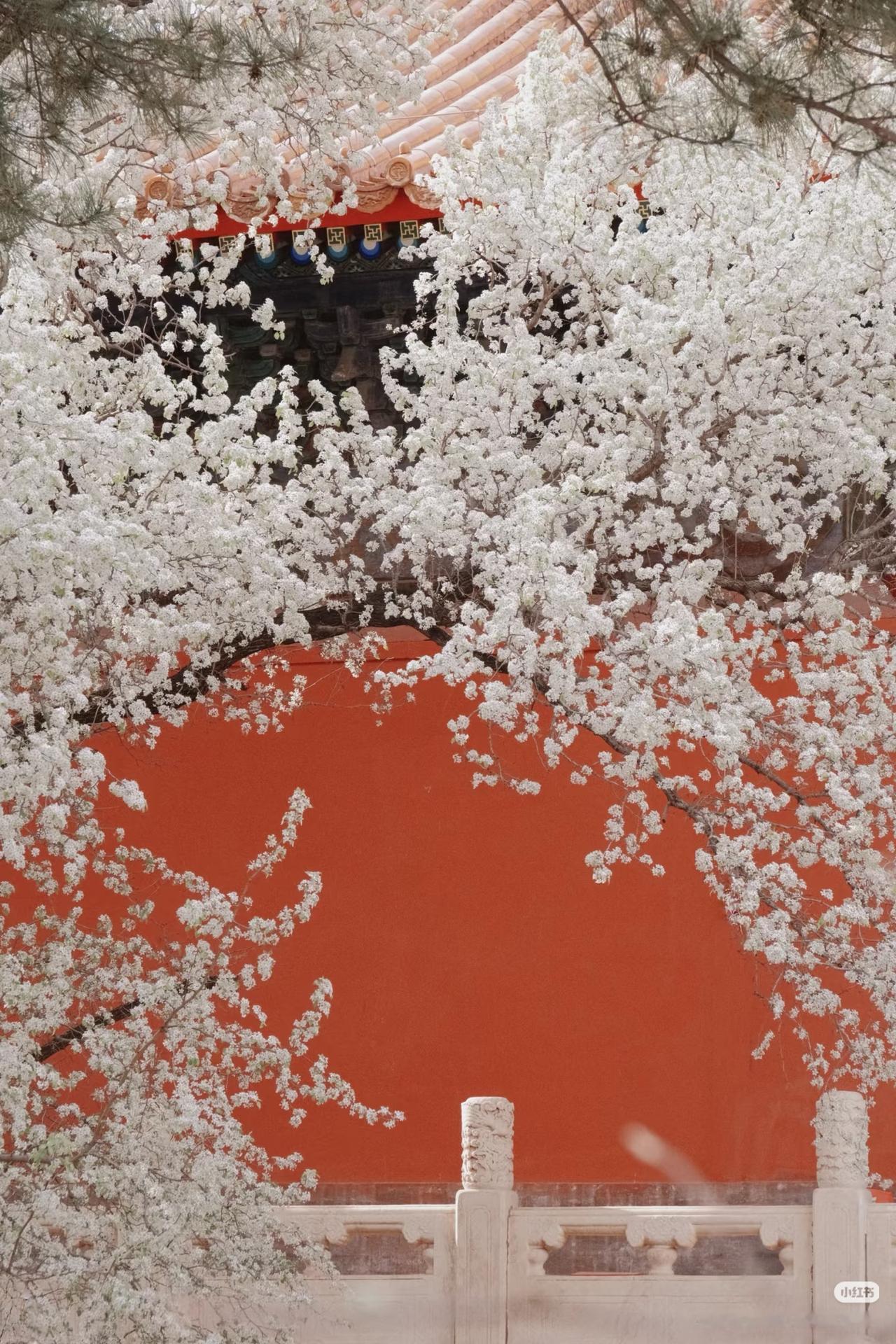 红墙黄瓦+洁白梨花 古风氛围感拉满