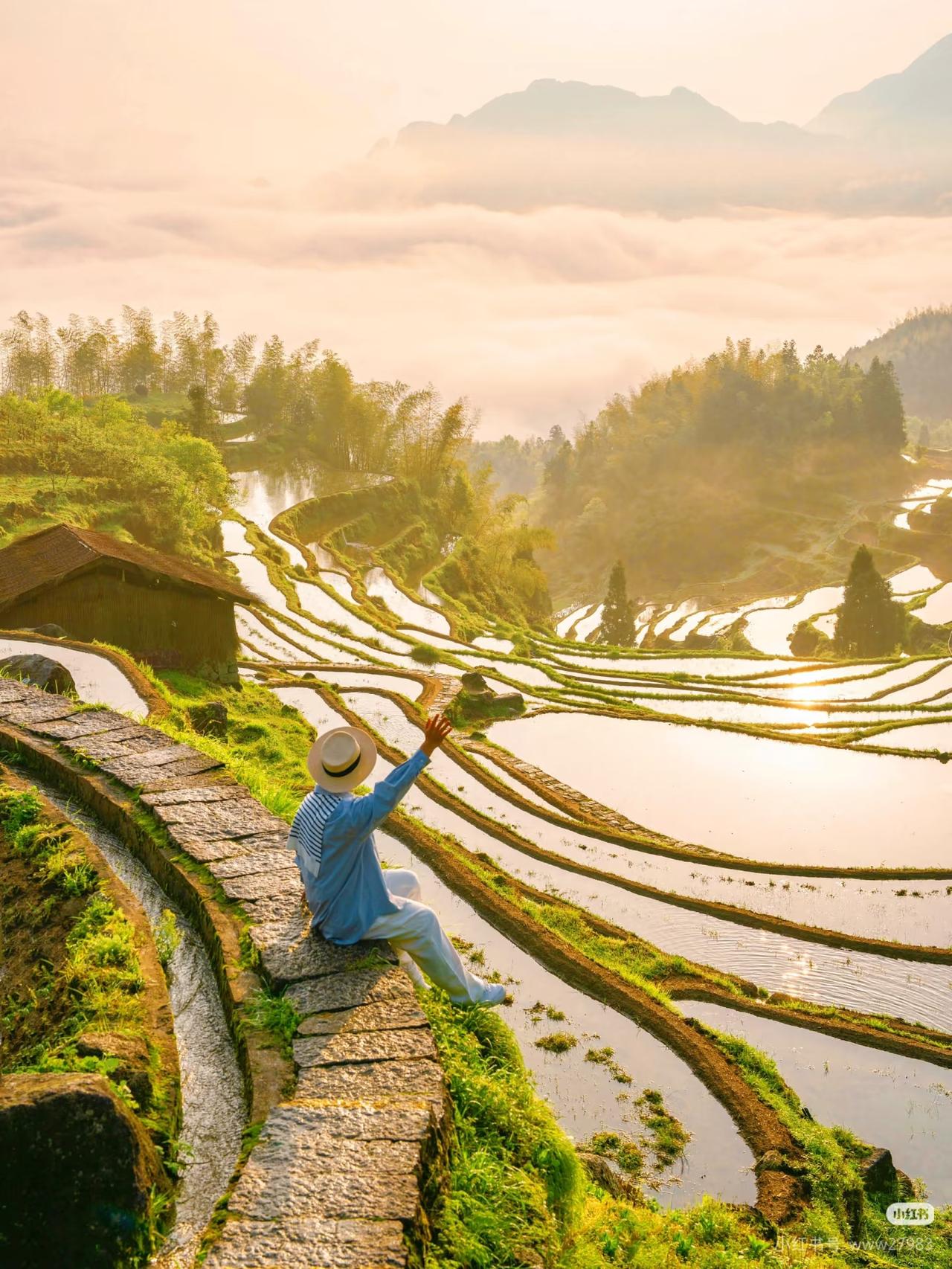 不在贵州!在浙江!日出云海梯田美到封神‼️ 如果你还不知道四五月去哪玩 不如了
