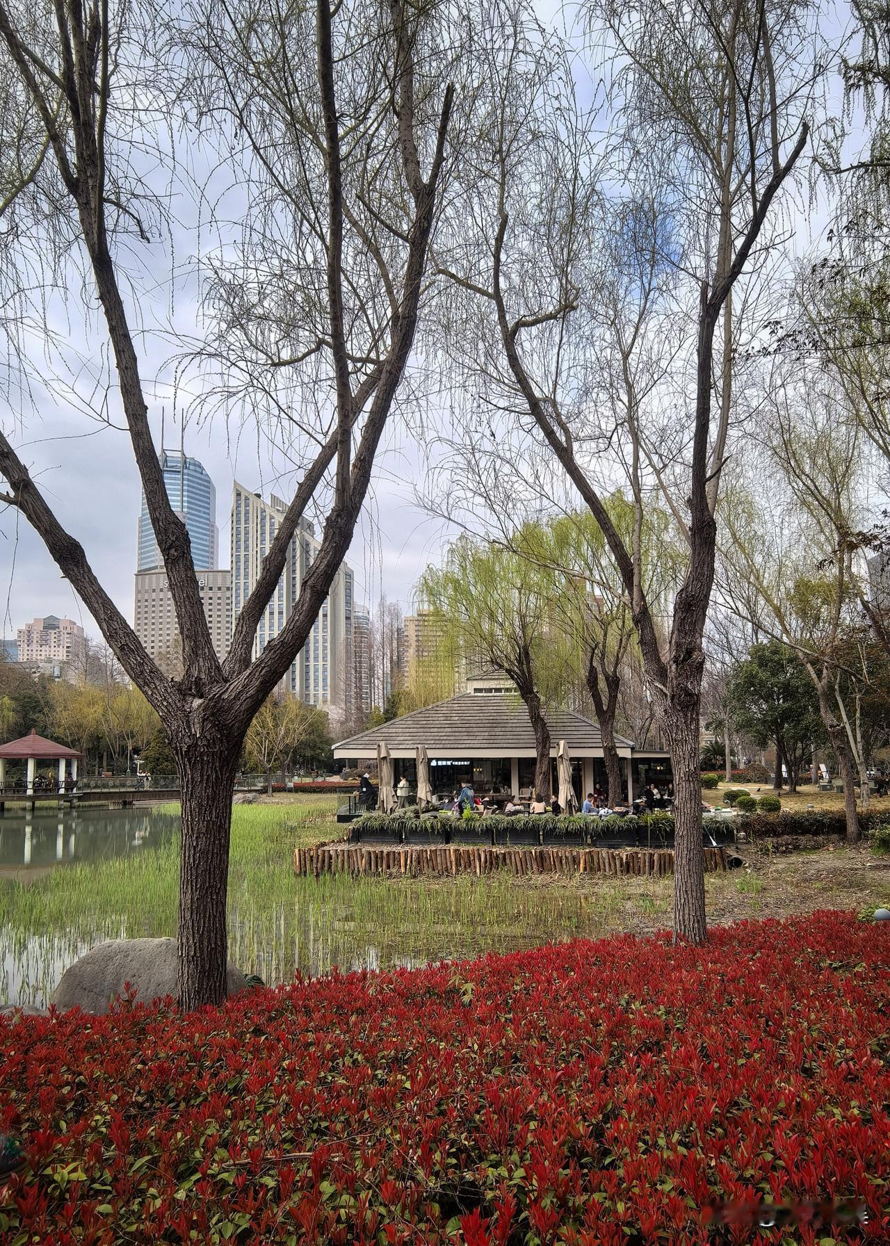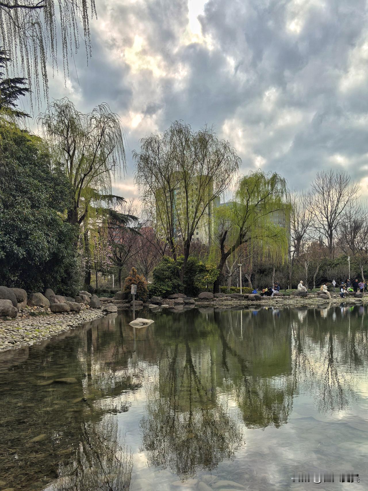 初春的天气,乍暖还寒,说变就变。我原本打算今天去静安雕塑公园拍郁金香,可天空一会阴一会晴,云层厚得像块大幕布,难得透出几缕阳光。这光景让我的拍摄热情顿时凉了半截,思来想去,还是决定就在家附近的公园转转算了。
