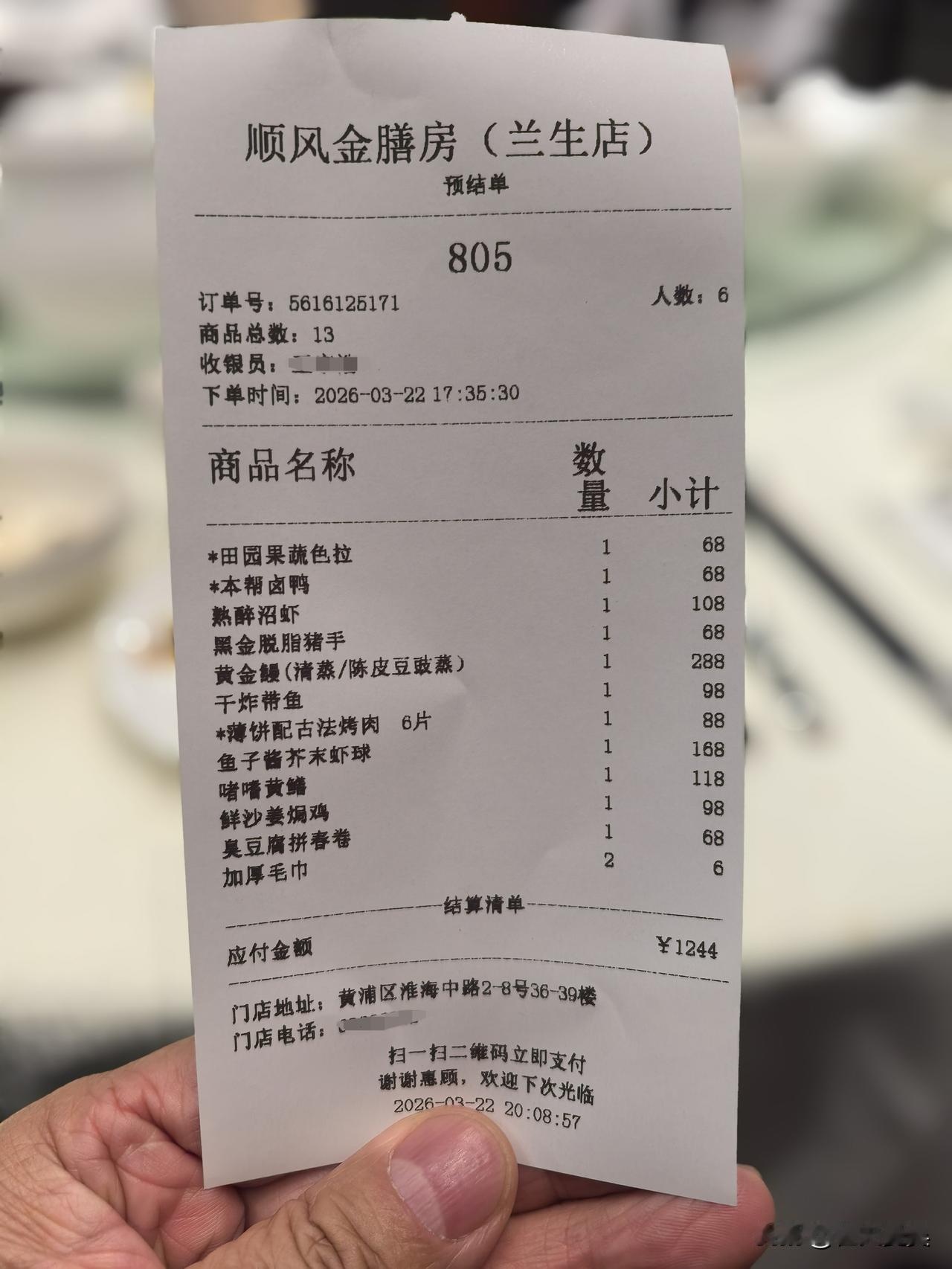 顺风大酒店曾是上海餐饮界一块招牌。因家附近就有一家,从前家庭聚会啥的我总爱安排在那里。只是近七八年,菜品质量明显下滑,便再未光顾。此番重访,偌大个餐厅,寥寥几桌,不免感叹这样的大餐饮,如今经营实属不易。