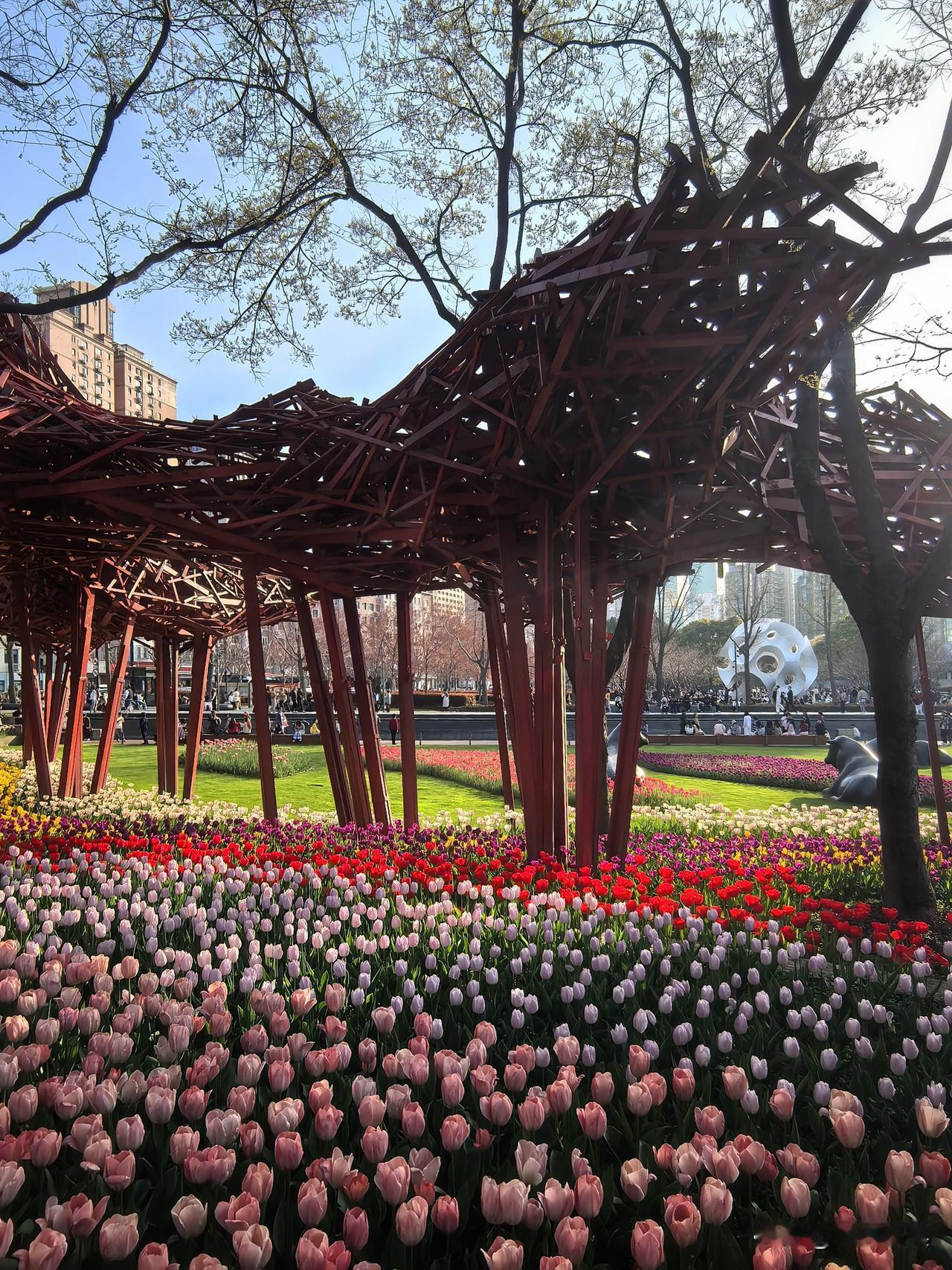 分享城市新鲜事 上海静安雕塑公园 郁金香氛围照 上海公园留影 郁金香观赏园