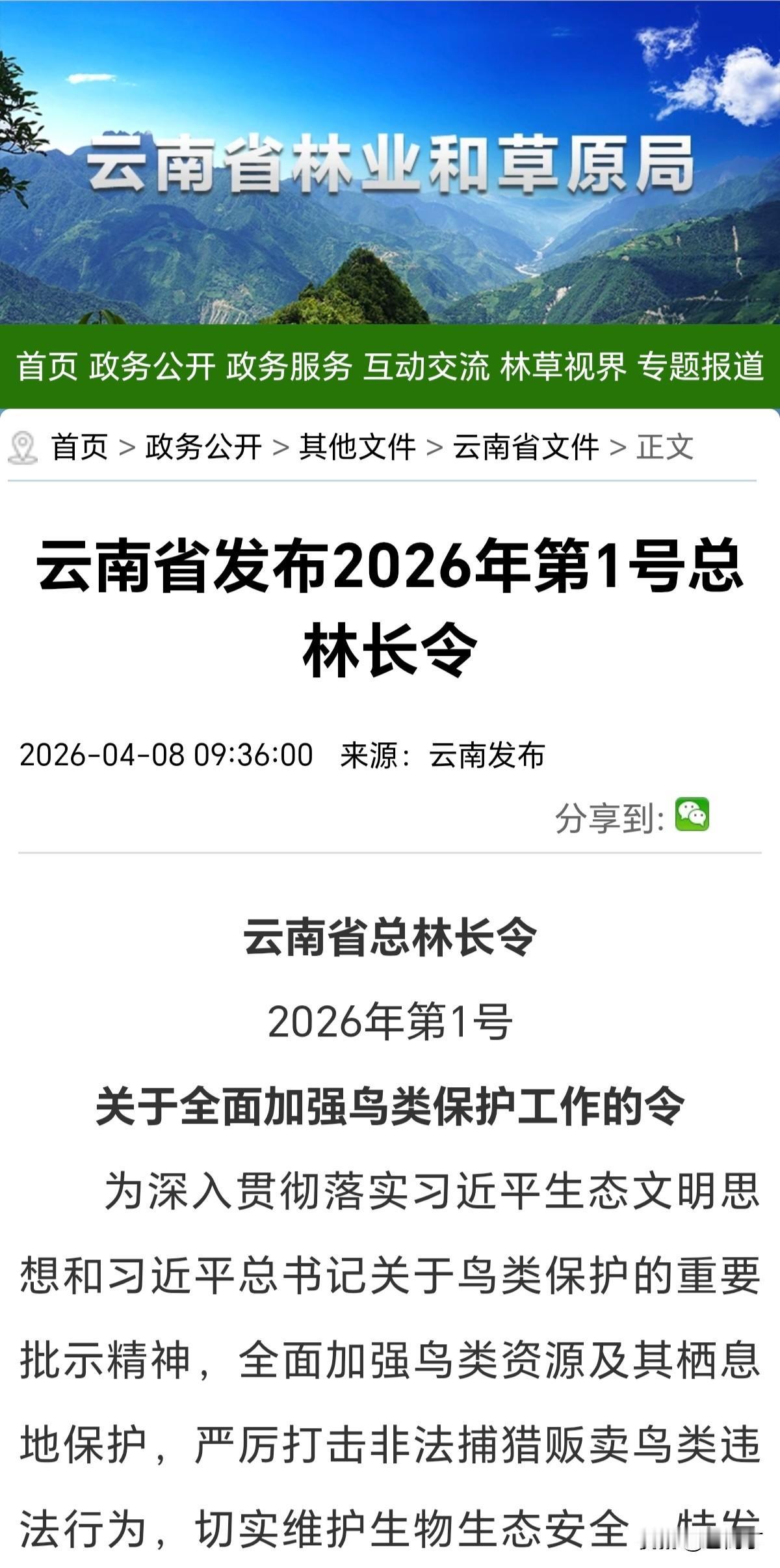 云南发布“护鸟总动员令”!2026年一号林长令剑指非法捕猎,守护“动物王国”!