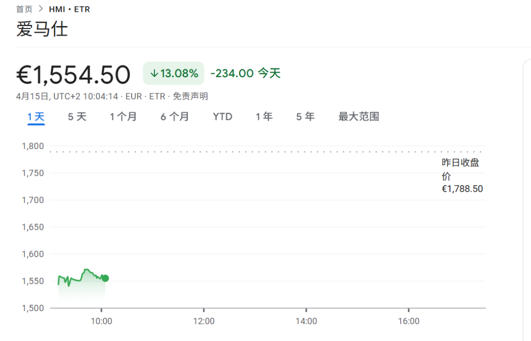 #欧洲奢侈品股大幅下挫#【#爱马仕Gucci股价全崩了##爱马仕暴跌13%创纪录#】奢侈品爱马仕,还有古驰(Gucci)的母公司开云集团,股价全崩了。4月15日下午,欧洲股市开盘,奢侈品股大幅下挫。由于中东冲突冲击奢侈品消费,开云集团和爱马仕公布的第一季度业绩令投资者失望。爱马仕股价暴跌13%,创下有记录以来最大盘中跌幅。开云集团下跌10%。两家公司业绩还拖累整个奢侈品板块。
