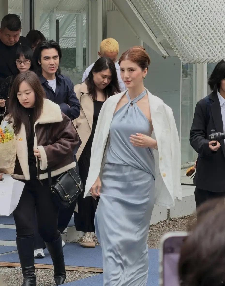 吴千语现身上海出席活动,身上的礼服真的很低档,看上去像临时窗帘布裹上身,还不如旁