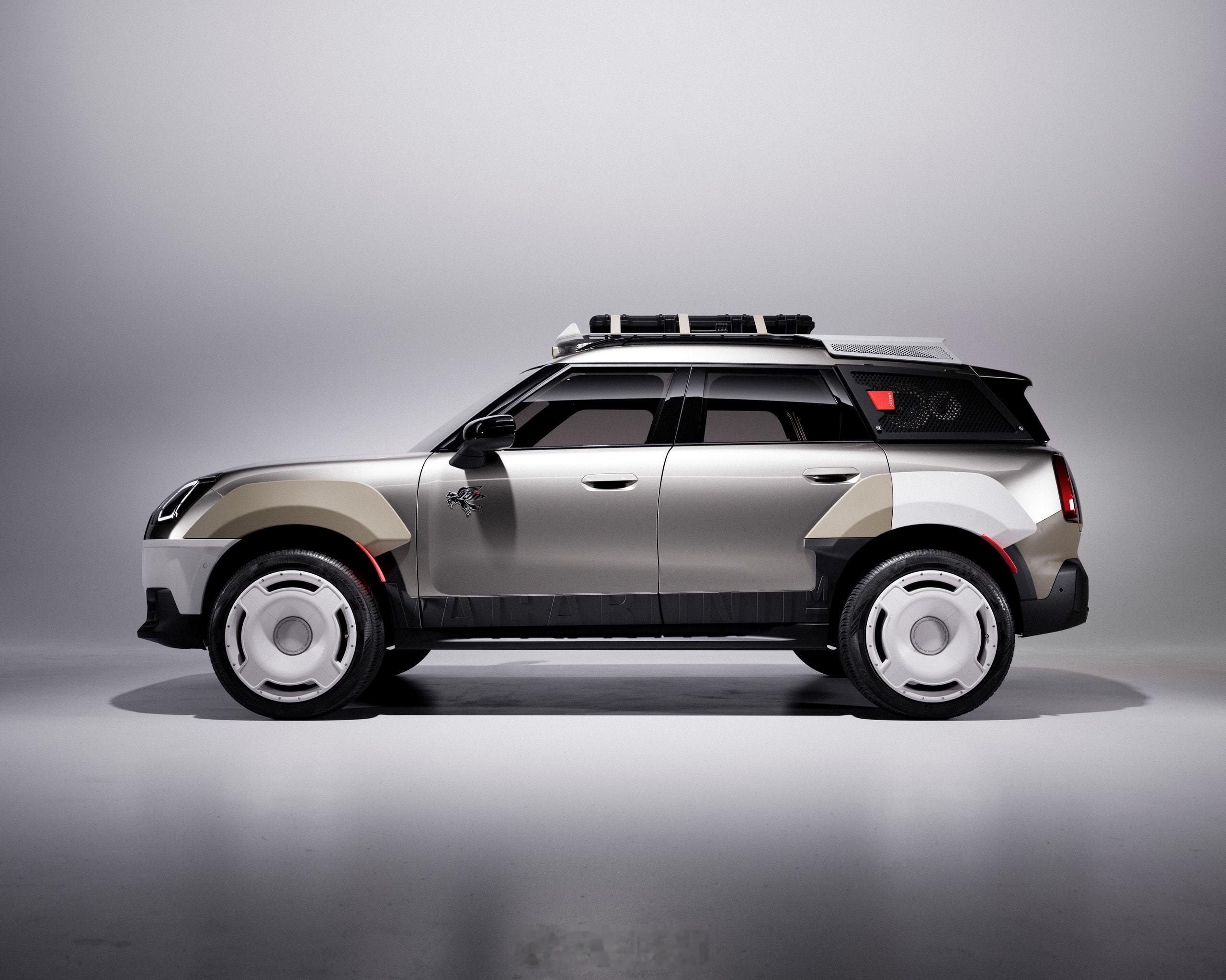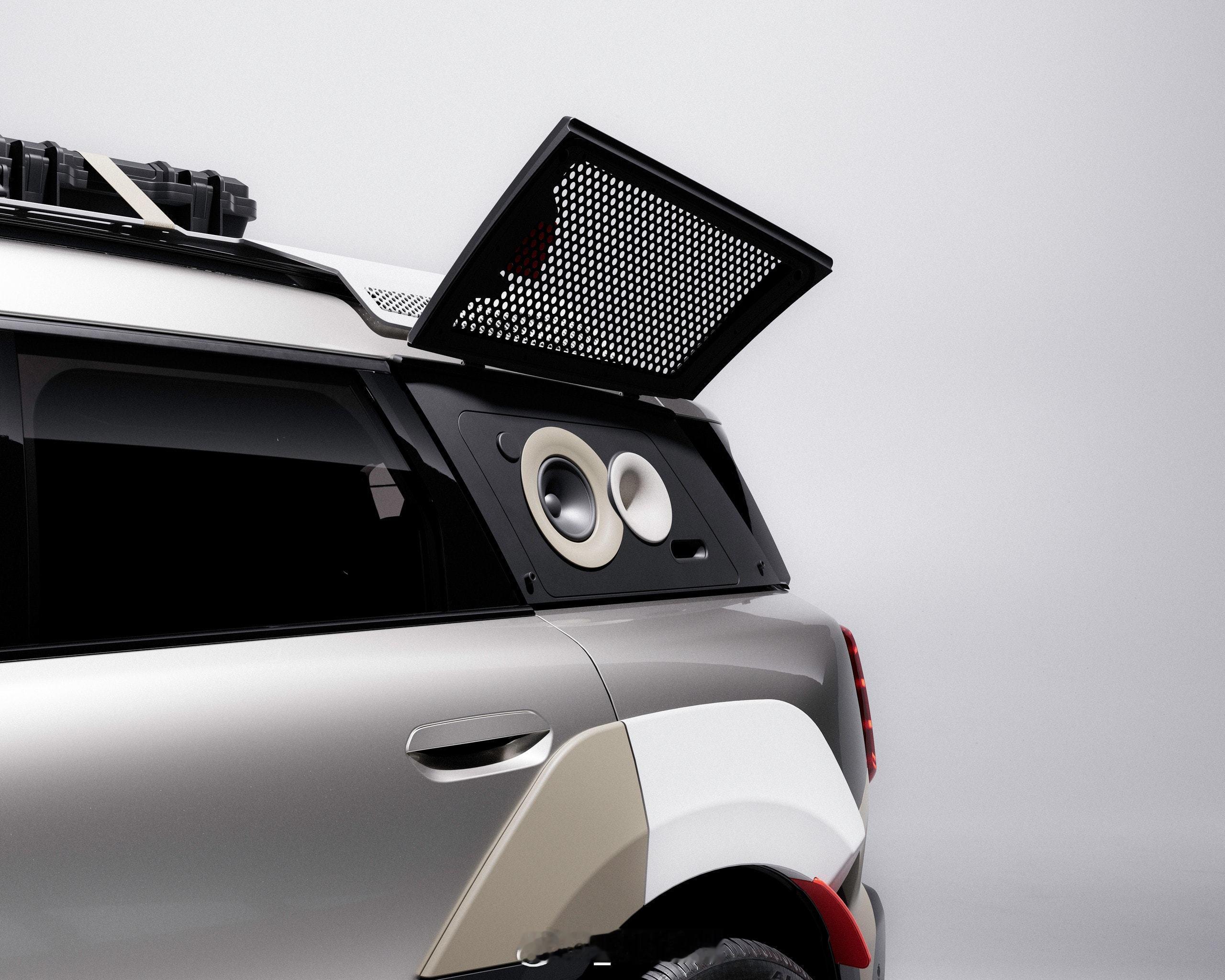 MINI Countryman Vagabund 改装版 MINI × 奥地利 Vagabund 联合打造了两台定制 Countryman,全车内外都集成了专业音响,车内能听歌,车外能炸场,可以车内独享,也可以车外放响全场,两台车既能单独播放,还能组队联动,组成沉浸式移动声场。一台熔银车漆,搭配沙色、白色撞色细节;另一台纯午夜黑单色涂装,风格一浅一深。两台均为纯定制孤品、不量产、不对外售卖。其中一台将于2026 北京车展全球首发展出