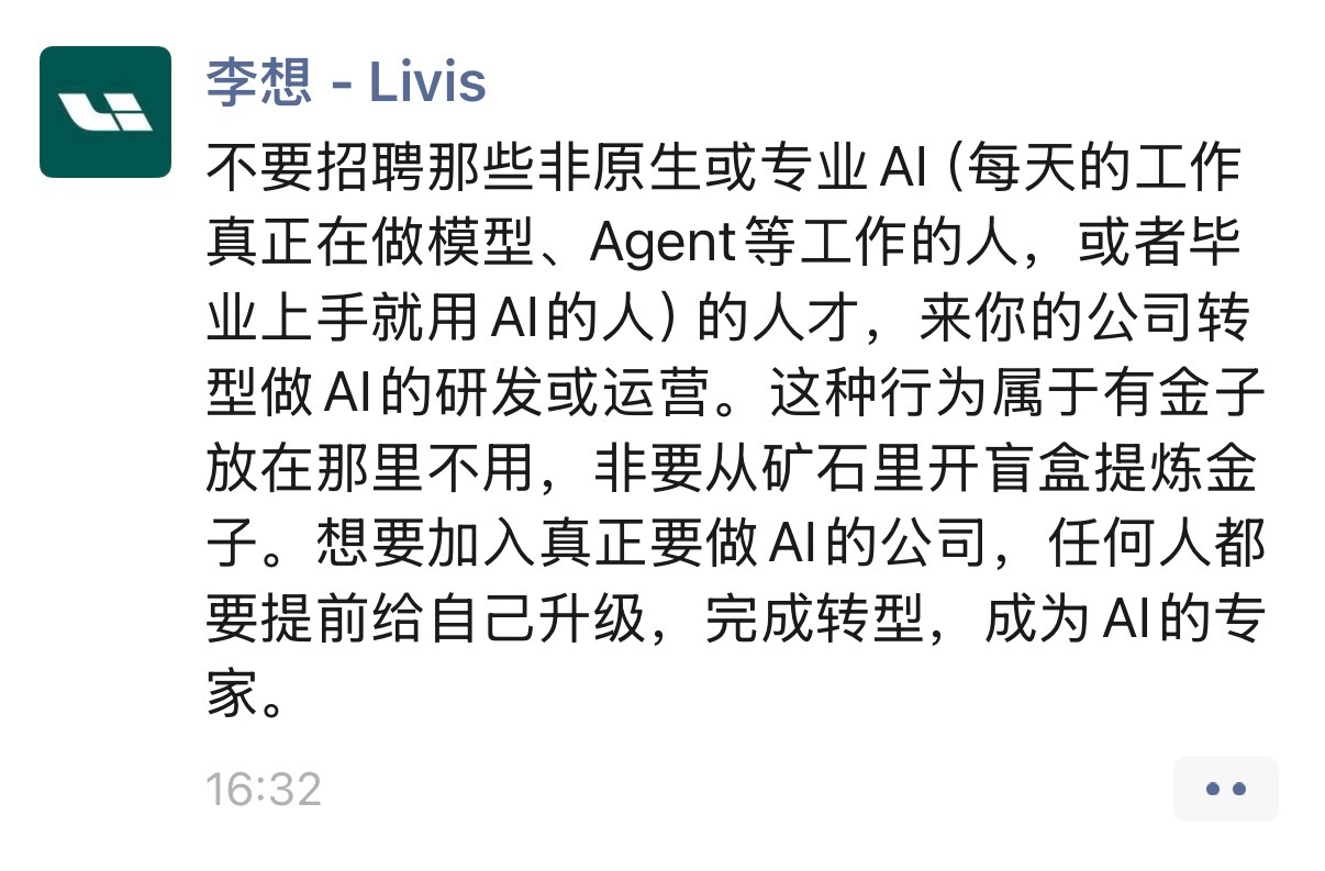 李想朋友圈关于AI人才的思考,你有同感吗?来说说
