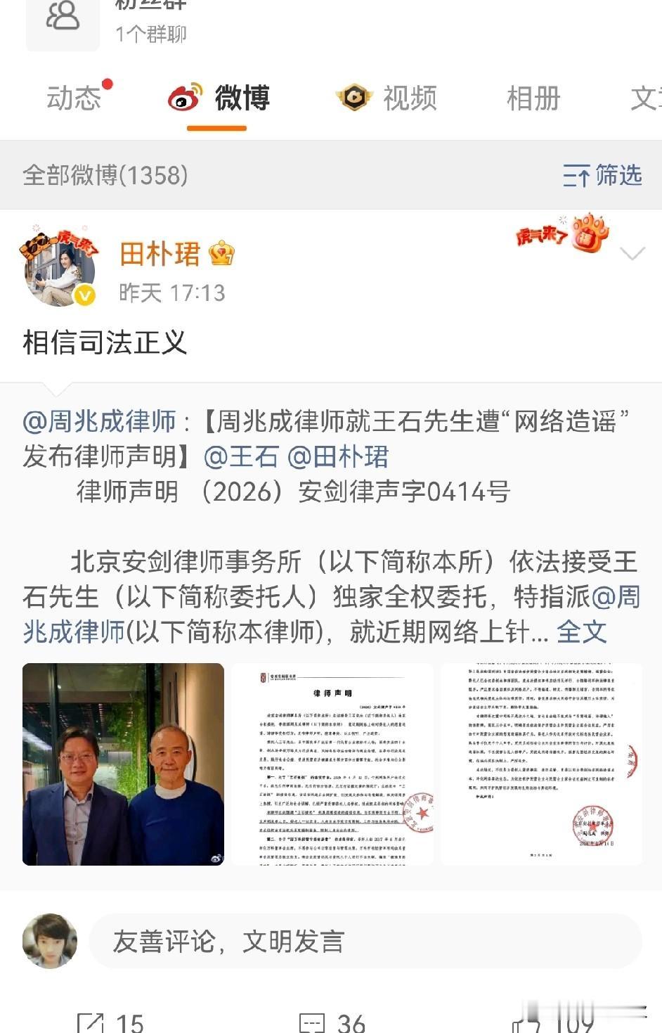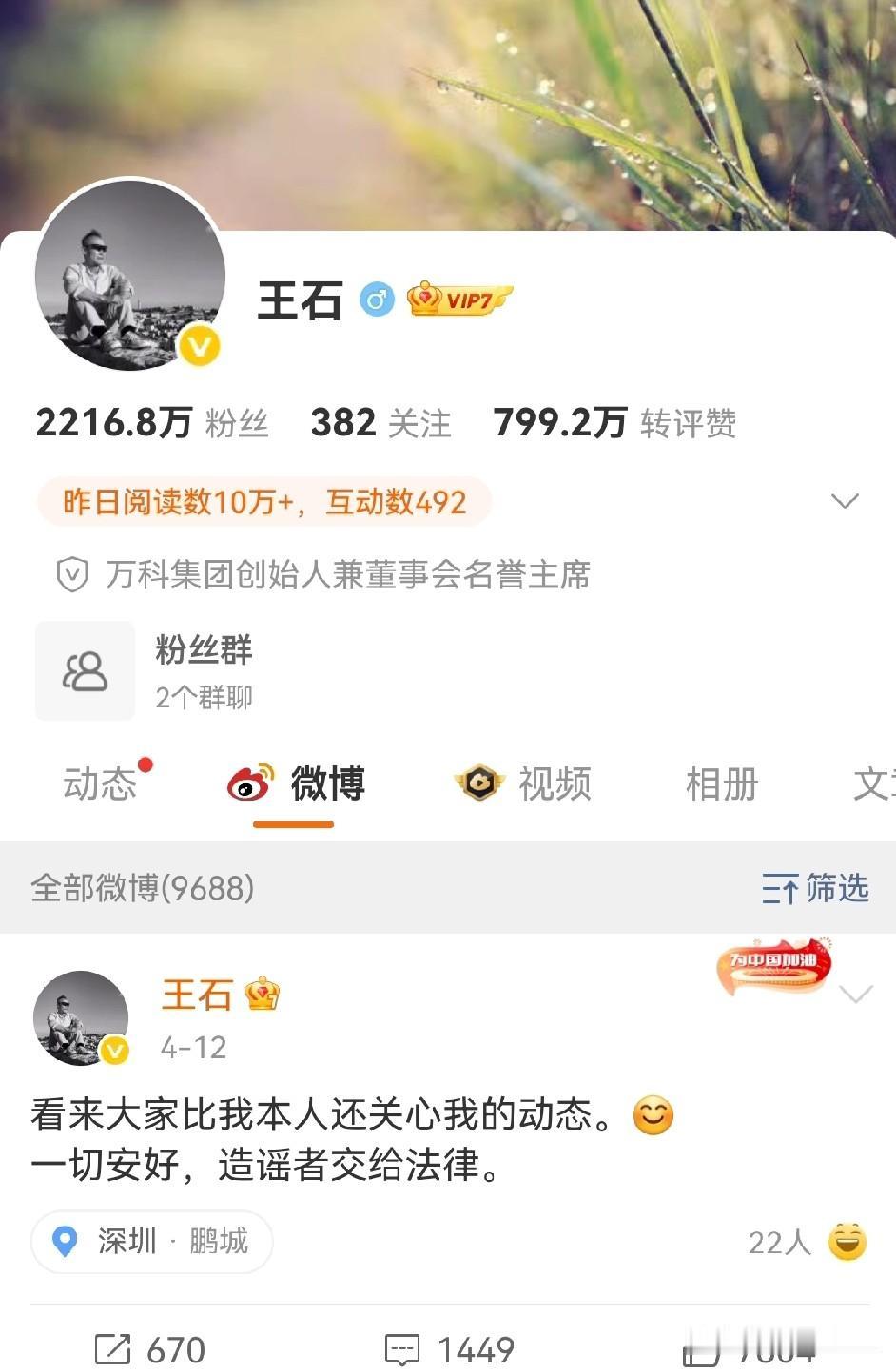 造谣王石被抓博主或被行拘刚刚看了眼,转发过500了,但是秦枫没删。王石和田朴珺