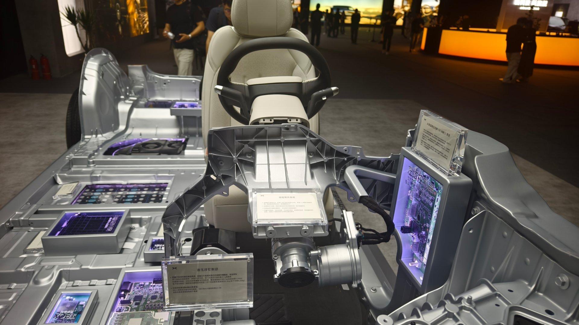 小鹏GX的线控底盘,没有传动轴,而且前后线控(后轮转向)新科技旗舰小鹏GX今晚预售