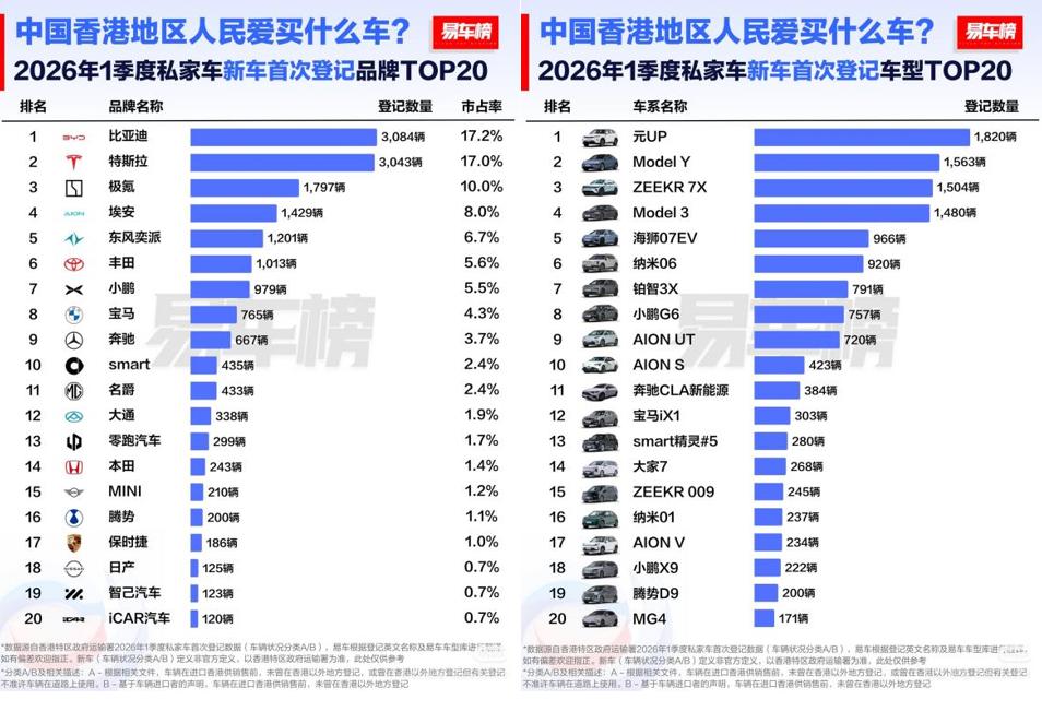 实力非凡!比亚迪一季度在香港市场强势领跑,斩获品牌和车型双冠