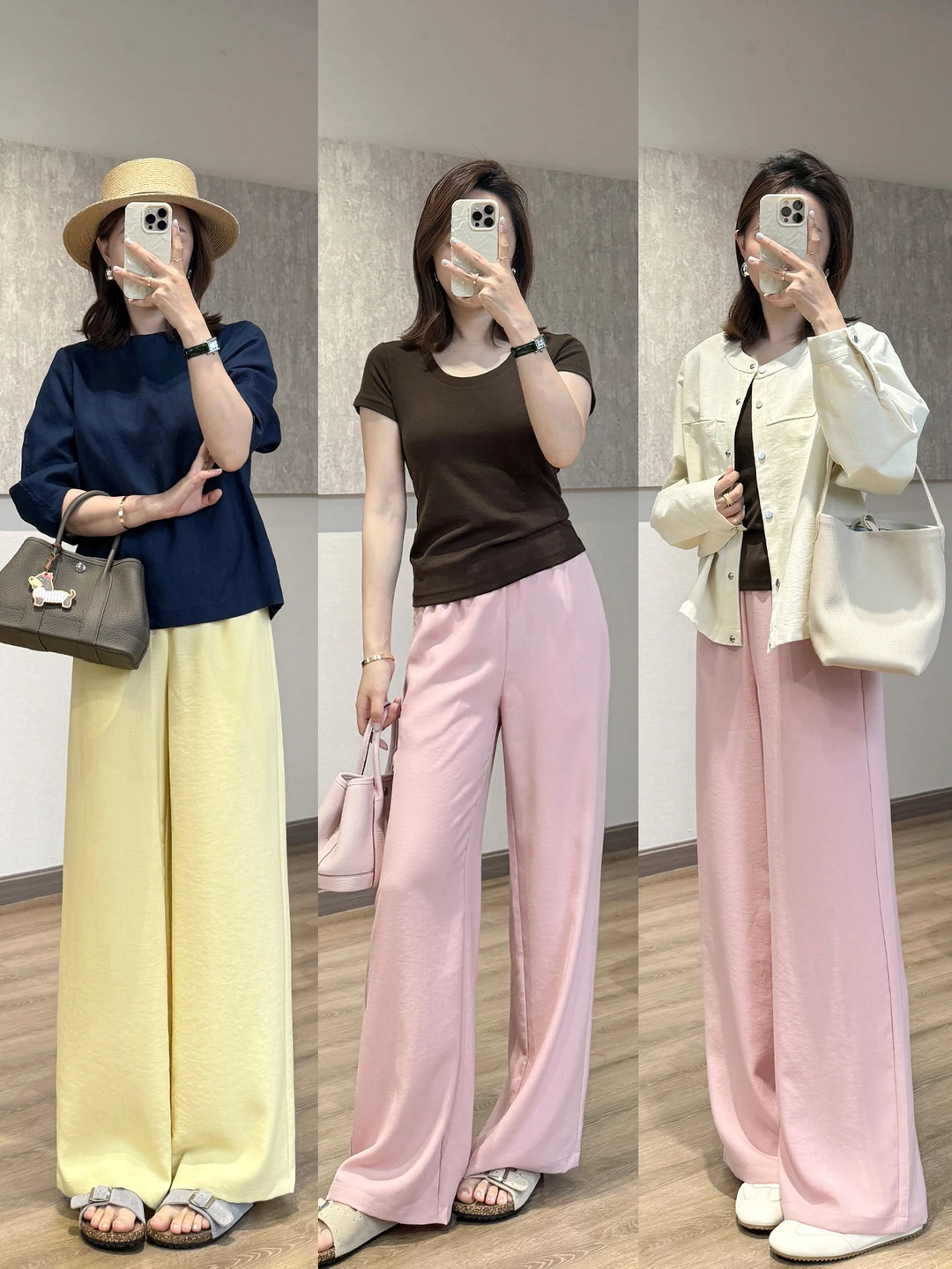 158小个子穿搭 梨形身材穿搭 夏季穿搭 垂感裤子 休闲裤穿搭 夏季裤子遮肉显瘦 阔腿裤 气质穿搭 亚麻裤子