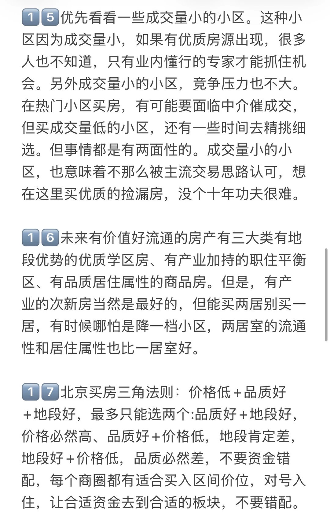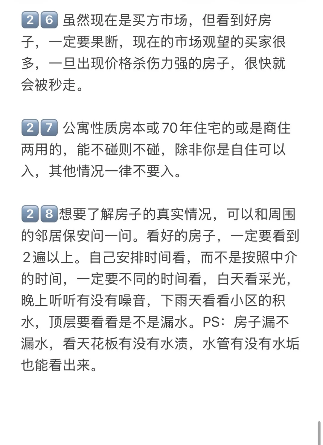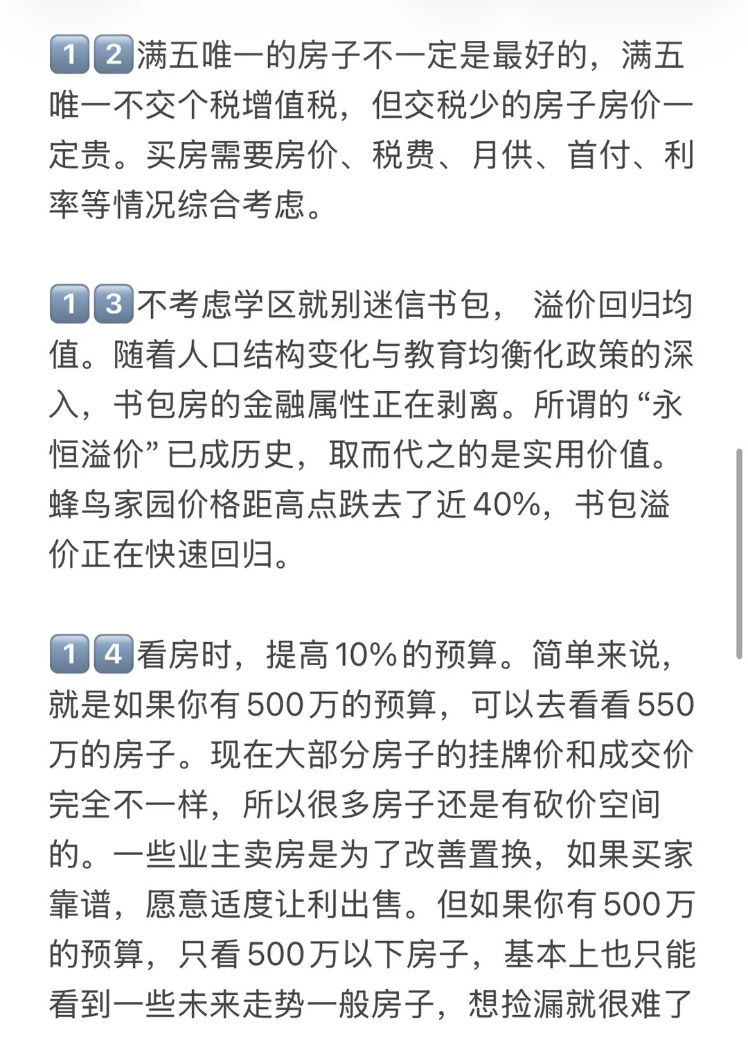 7️⃣看房时,提高10%的预算。简单来说,就是如果你有500万的预算,可以去看看550万的房子。现在大部分房子的挂牌价和成交价完全不一样,所以很多房子还是有砍价空间的。一些业主卖房是为了改善置换,如果买家靠谱,愿意适度让利出售。但如果你有500万的预算,只看500万以下房子,基本上也只能看到一些未来走势一般房子,想捡漏就很难了