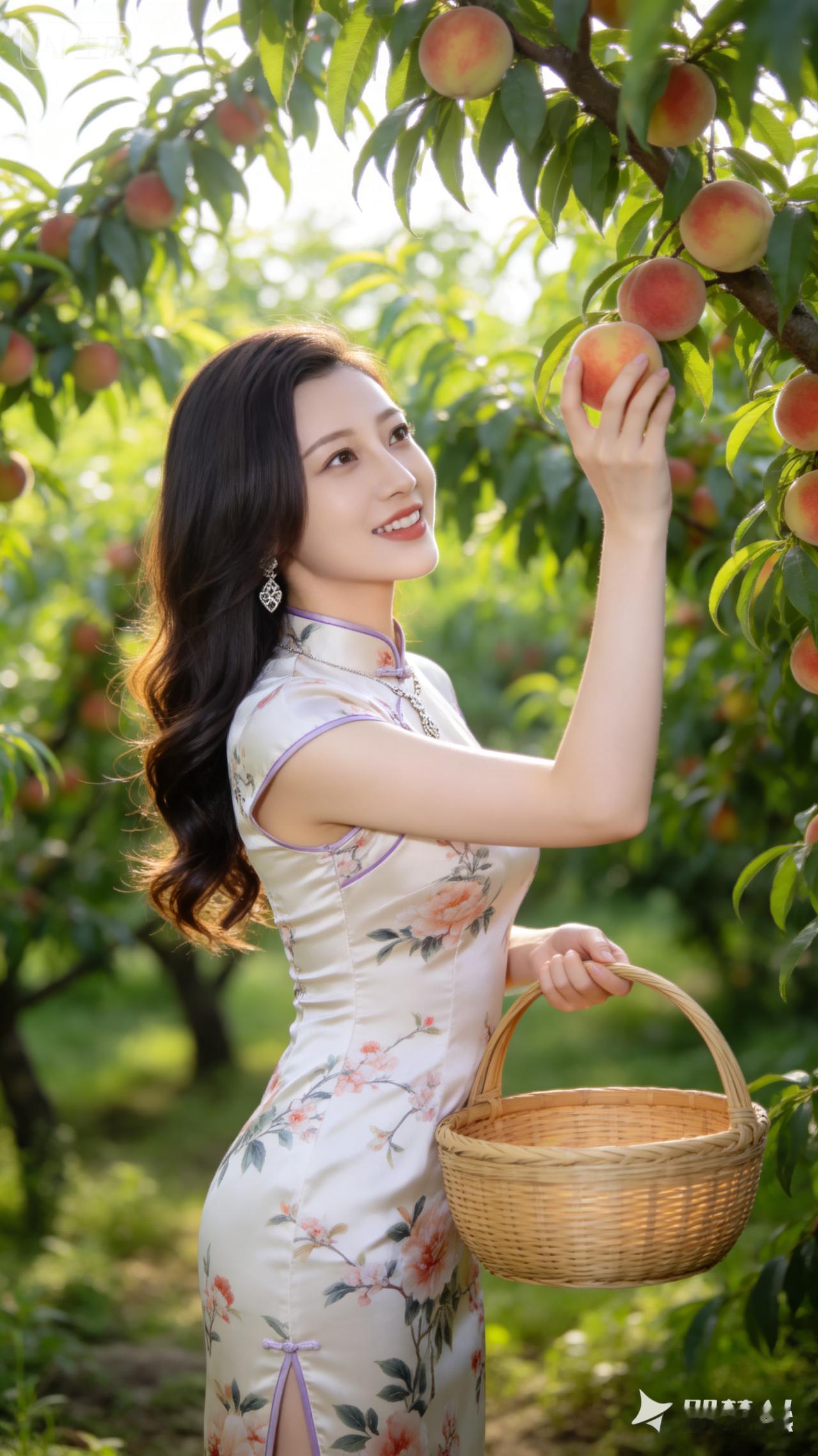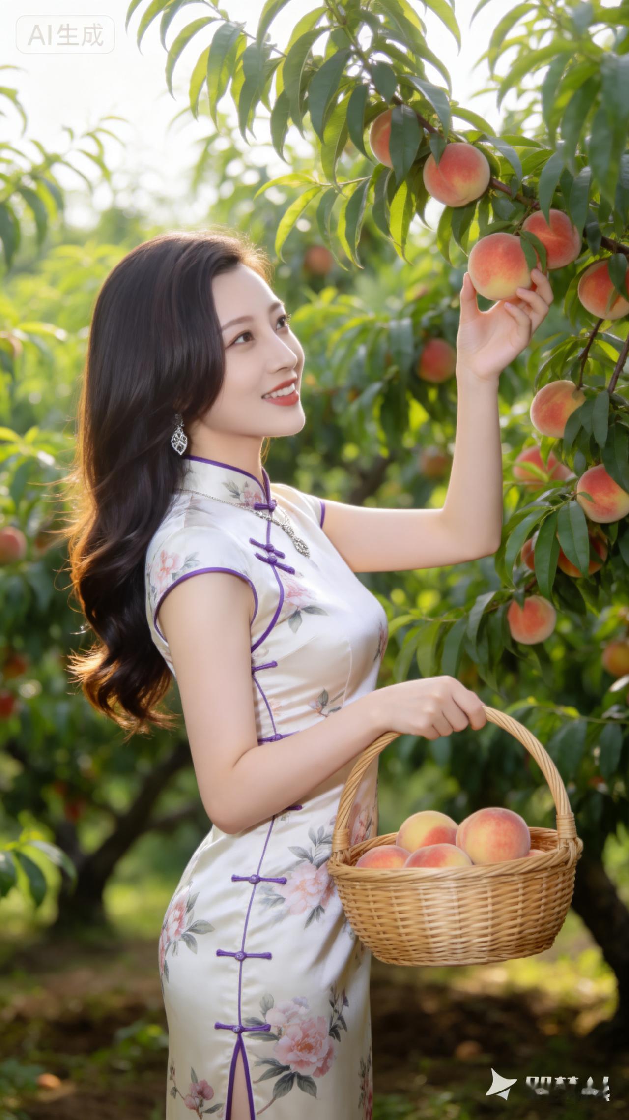 桃园采摘记 | 紫色旗袍与红桃的完美搭配🌸🍑