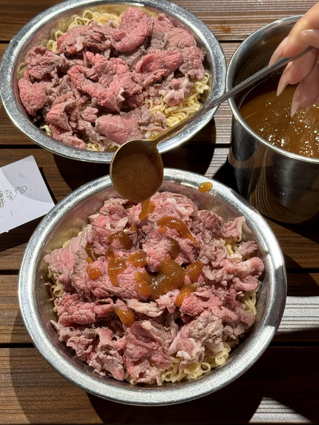 花了三十块钱点两碗牛肉面,结果一块肉都看不见,这你敢信?那哥们儿就问服务员,我