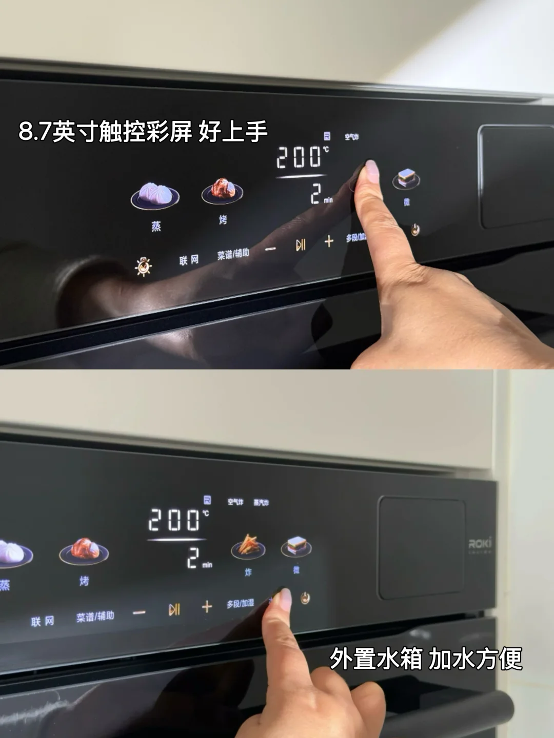 8.7 英寸静态彩屏,操作简单,老人小孩都能上手。进口珐琅搪瓷内胆,做完饭一擦就净,高温烘烤不变色、耐刮擦,打理起来超省心。